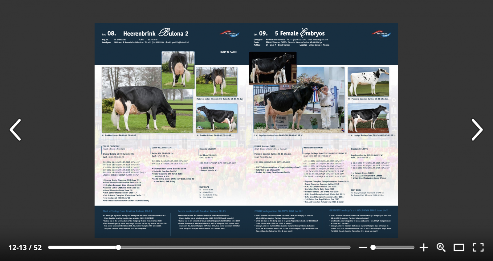 An ONLINE LIVE SALE which you would'nt miss! The LIVE ONLINE edition of the Holland Masters Sale. The Online Holland Masters Sale will be held live on Friday the 9th of July at 20:30 P.M. (Dutch-time) through the sale site. Videos and snapshots of the lots selling will be available in the week before the sale. Selling are >44 lots with something for everybody. High genomics, fantastic show heifers, Jersey's, Red & White's, embryo packages and much more. For more info please contact us through info@eurogenes.com. Click further for the catalogue.
