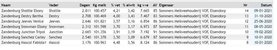 100.000kgM production cows at Zandenburg Holsteins (January 2020 - January 2021)