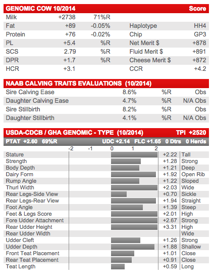 Oosterbrook Holsteins from Leon Heijnink has bred the World's highest GTPI Chevrolet dtr, Oosterbrook Chevrlet Jazzs-ET with GTPI +2520. She is a Chevrolet x Supersonic x Colby x Laudan from the Hol-Stiens Janet cow family.