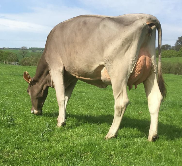 Kedar Brown Swiss in the UK had an open day last week, everyone who wanted to see the farm and their beautiful Brown Swiss cows that day was welcome. Several of their best young cows were lined up like they would be at a dairy show to make clear to the visitors how that is done. One of the highlight cows was Old Mill Wonderment Sunset EX-92-UK 3rd calf, one time Grand Champion UK Expo, and she is a Wonderment daughter straight out of 6 x World Dairy Expo Grand Champion and one time Supreme Champion Old Mill E Snickerdoodle EX-94-USA!