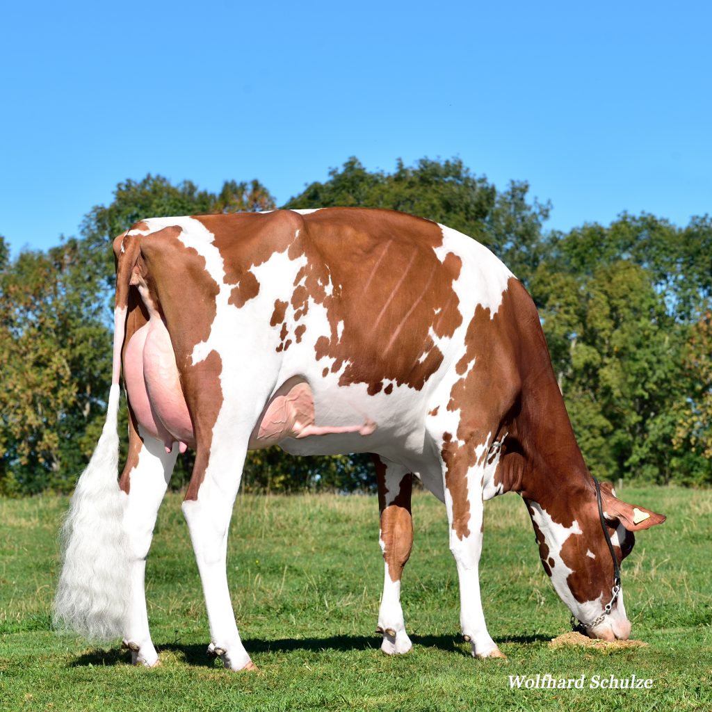 Dueholm Breeding in Denmark has added a very exciting new heifer to their herd with Ptit Couer TGD Swingman Polly! Polly is a lovely Swingman daughter with +1369 ISET and sired by Swingman. She is a grand daughter to Ptit Coeur Addiction Passoa VG-87-CH and a great granddaughter to the amazing Pasteque EX-96-CH with EX-96 for her Mammary System! Pasteque EX-96-CH is no stranger to the show ring and has already won several titles like, Grand Champion Swiss Expo 2019 and European Champion R&W in Libramont 2019. Swingman Polly her full brother, Ptit Coeur TGD Primenov is at SwissGenetics and more brothers and sisters from Polly tested amazing in the Swiss Index!