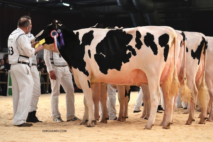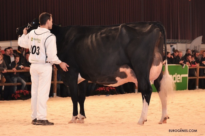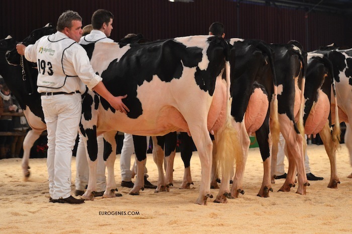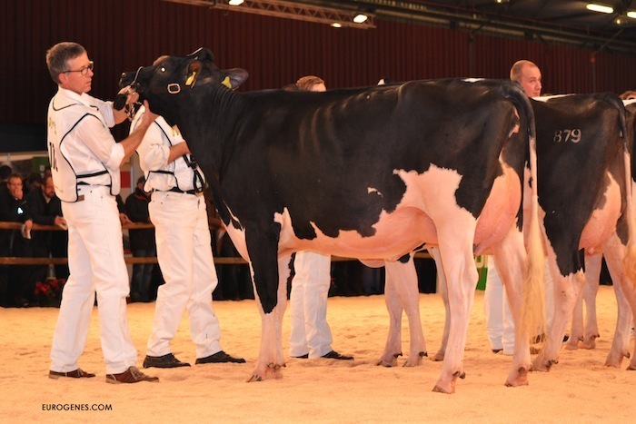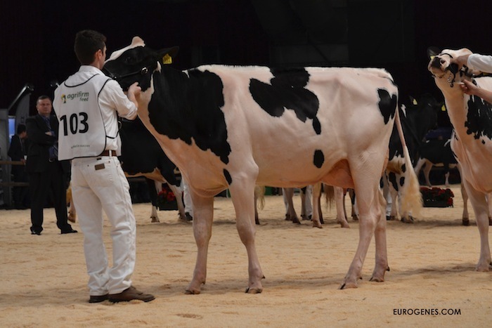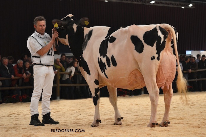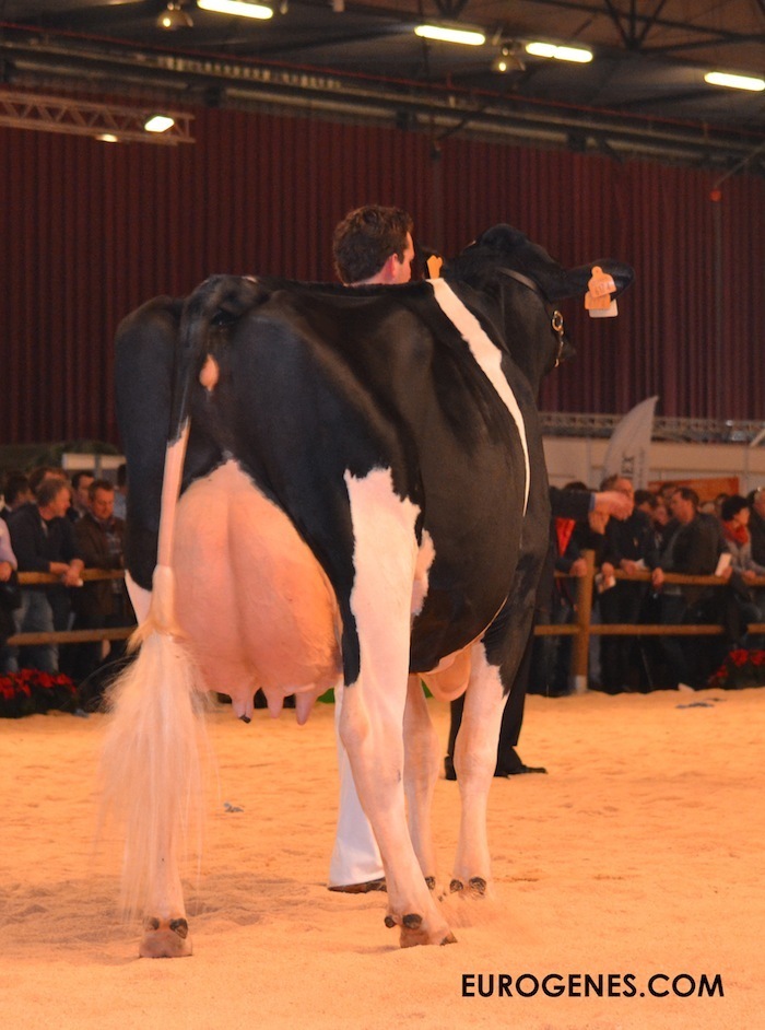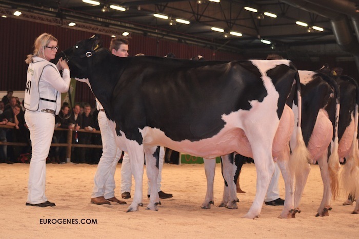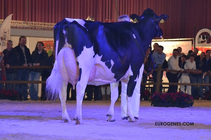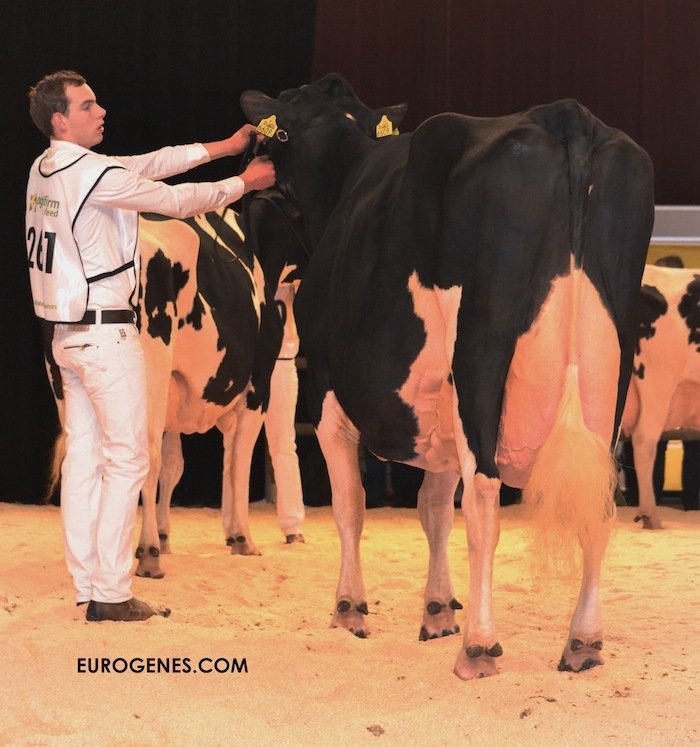 The former #1 GTPI Cow from Europe in the Showring, All.Nure Baxter Silvy EX-90, milking here for 16 months!