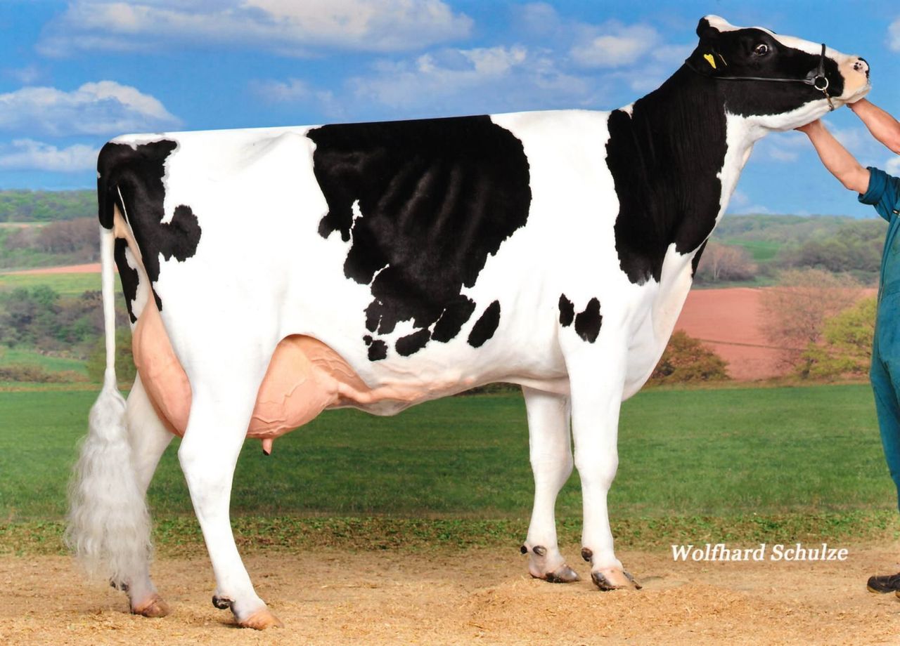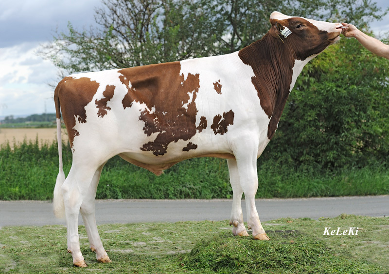The famous Mr. Sam daughter Mrs. Poll-P is pictured. She is a Red Carrier and Polled Mr. Sam daughter without Lawn Boy in her pedigree, she is the cow which is responsible for a very interesting and strong branch in the polled and R&W breed, she delivered already interesting bulls, like Laptopp *PP for example. One of her most interesting daughters is the Polled Mogul daughter KNS Mogul Missile *P from Arums Holsteins in Belgium. A Polled Mogul daughter x Mr. Sam!!! She is amongst the highest Polled heifers of her generation!