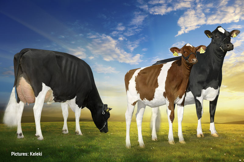 NH Lawn Boy India VG-88-DE 2yr., with her Red Dertour Grand dtr (sold for EUR 39.000 in the EG Online Heifer Sale) and India's Bogart dtr NH Indira *RC *PO.