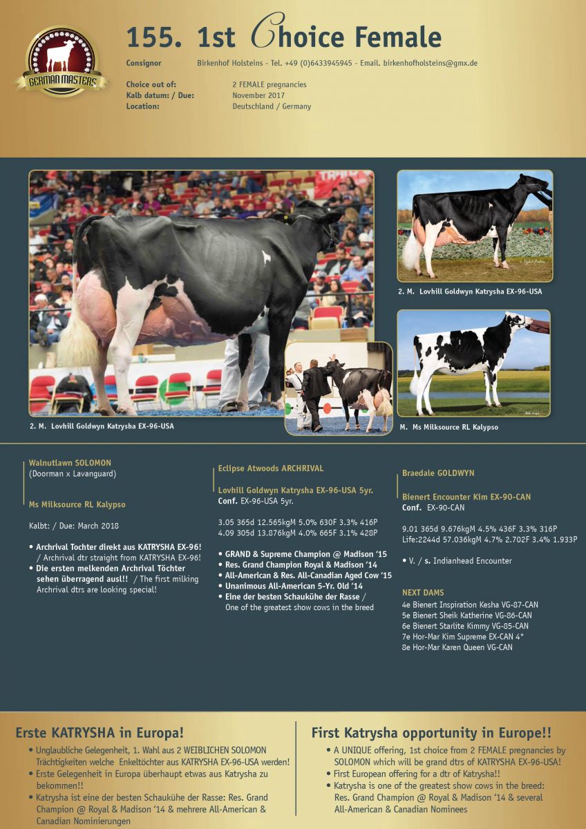 The GERMAN MASTERS SALE 2017 will be held on Friday the 20. of October 2017, the catalogue will be send out next week and the complete catalogue can be found online in the next days through the German Masters Sale website. Here already a preview of a few lots selling in the German Masters Sale 2017 #SHOWPART!