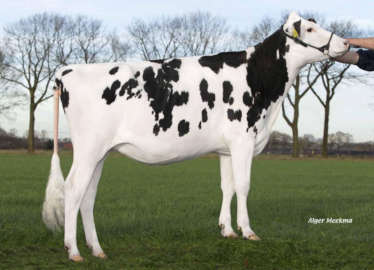 Westerwolda Holsteins owns a unique member of the Ashlyn family with Alabama *RC *PO. She is Red Carrier and Polled and carries a fantastic sire stack as a Snowman daughter x Lawn Boy x Talent. Her 3rd dam is the legendary show cow Tri-Day Ashlyn EX-96-USA, Grand Champion Royal Winter Fair & World Dairy Expo 2001 and has over 22 Excellent and 33 VG daughters all around the Globe. Alh Alabama *RC *PO recently has been pictured, click further for her picture.
