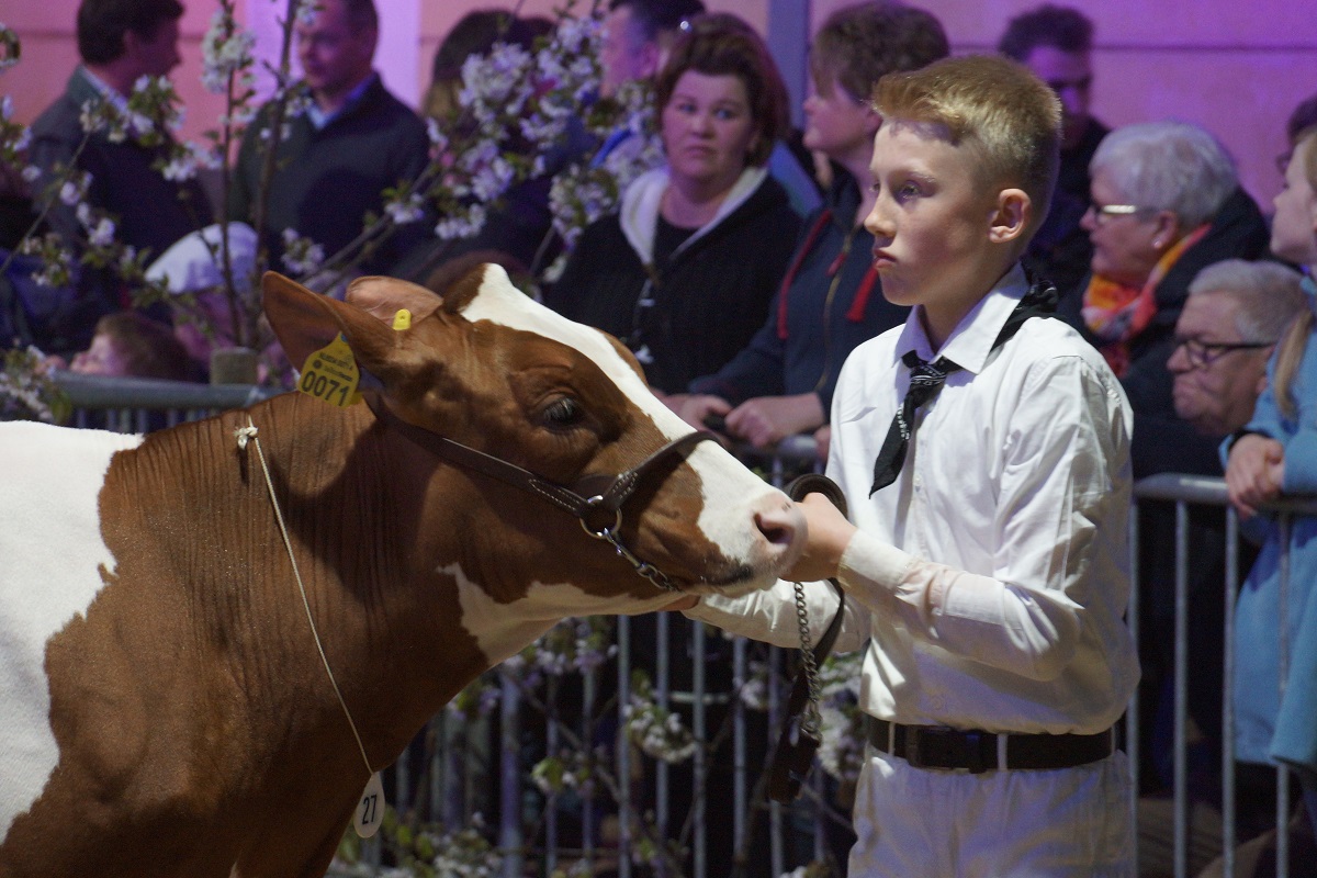 KOE Fabiola Red, owned by the Bakker family of Batouwe Holsteins & Dick & Ellis van Zetten, recently won the Res. Intermediate Championship title in the black & white classes!! Fabiola is from a deep German cow family. The young Bakker brothers had a very successful show: Gert Bakker (8 yrs) won the Showmanship Championships with Batouwe Pat Bella Red, while his brother: Rens Bakker (12 yrs) won the clipping competition with DG Agnieska Red.