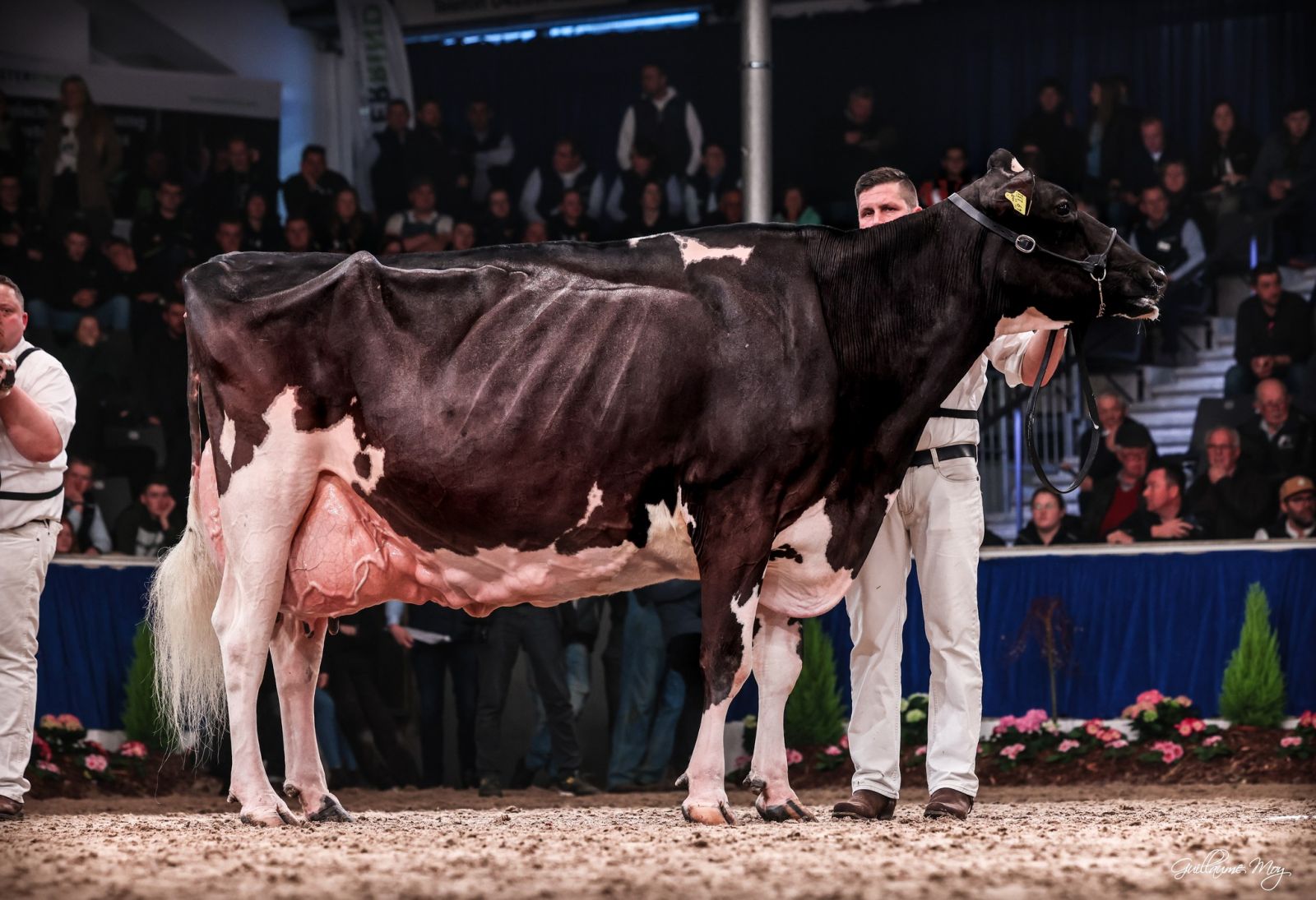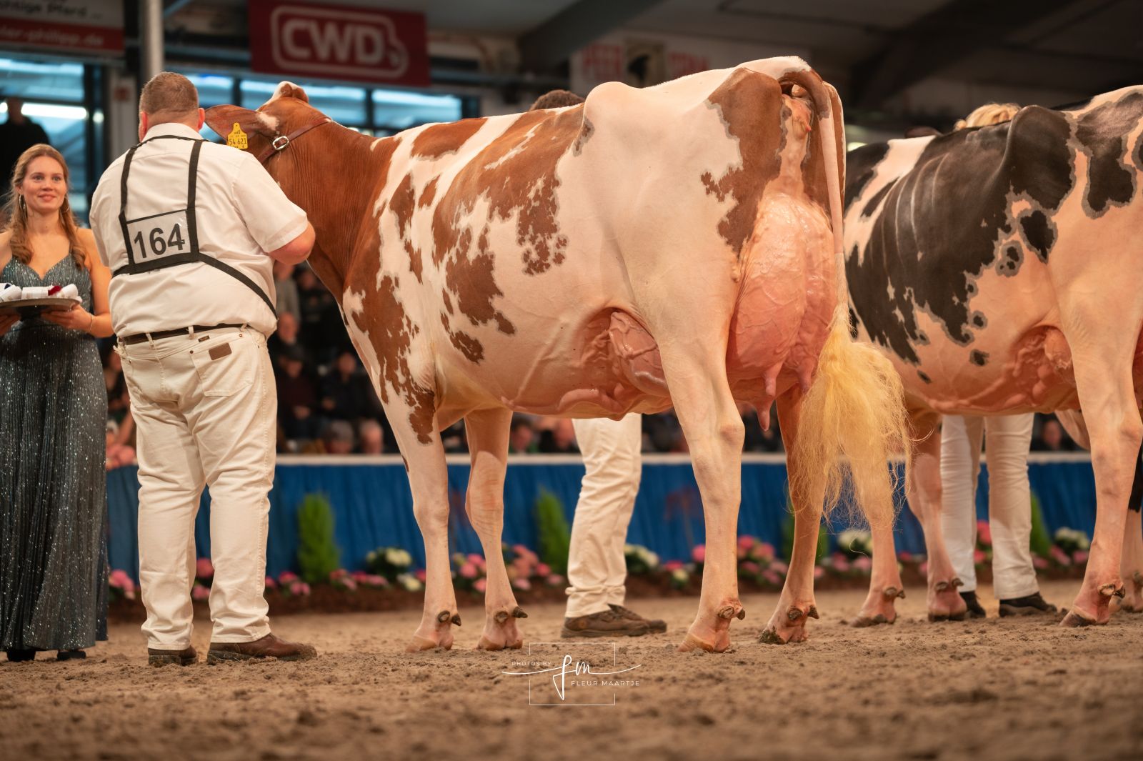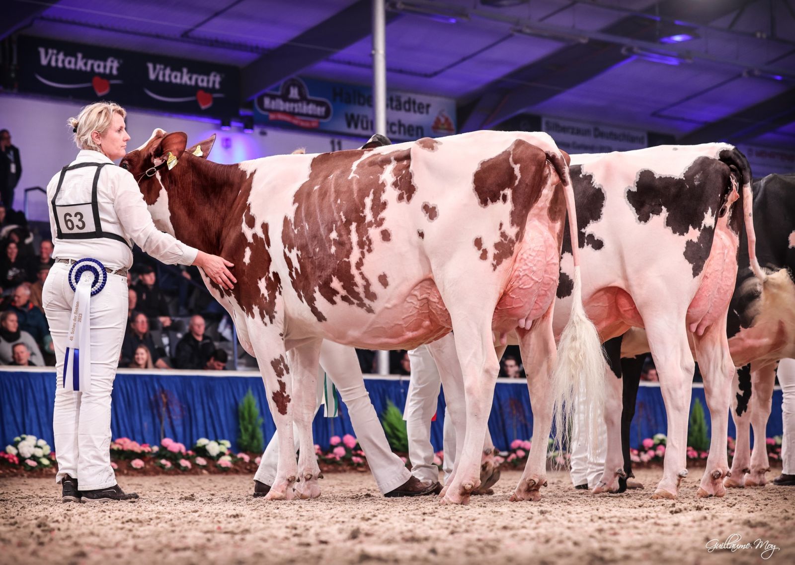 RS Maryrose (s. Arino-Red), is the new Grand Champion & Intermediate Champion of the 49. Schau der Besten, held in Verden, Germany. The classwinner and Senior Champion title was for Fux Tohuwabohu (s. Godewind), she is followed by the 11 years old Reserve Champion Senior cows: BWH Annika (s. Atwood). LOH TJ Alessja EX-95-DE was named as Honorable Mention Senior Champion. This extraordinary cow is owned by Nosbisch Holsteins, J. Lohmöller, T. Melbaum and M. Blaise. She is an Armani daughter out of Luck-E Redburst Aphrodite-Red VG-87-NL 3yr. Classwinner of the class with 2nd calvers was SH Ariel. She is a pretty Crushabull daughter straight out of HC Archrival Arianne VG-89-NL EX-MS 4yr. (MAX). She is sold as embryo from Schouten Holsteins to Franz-Bernd Meyer. The 2yr. old Champion of the show was Rosalie. She is a very stunning Mirand PP *RC daughter owned by Henrik Wille, Germany.