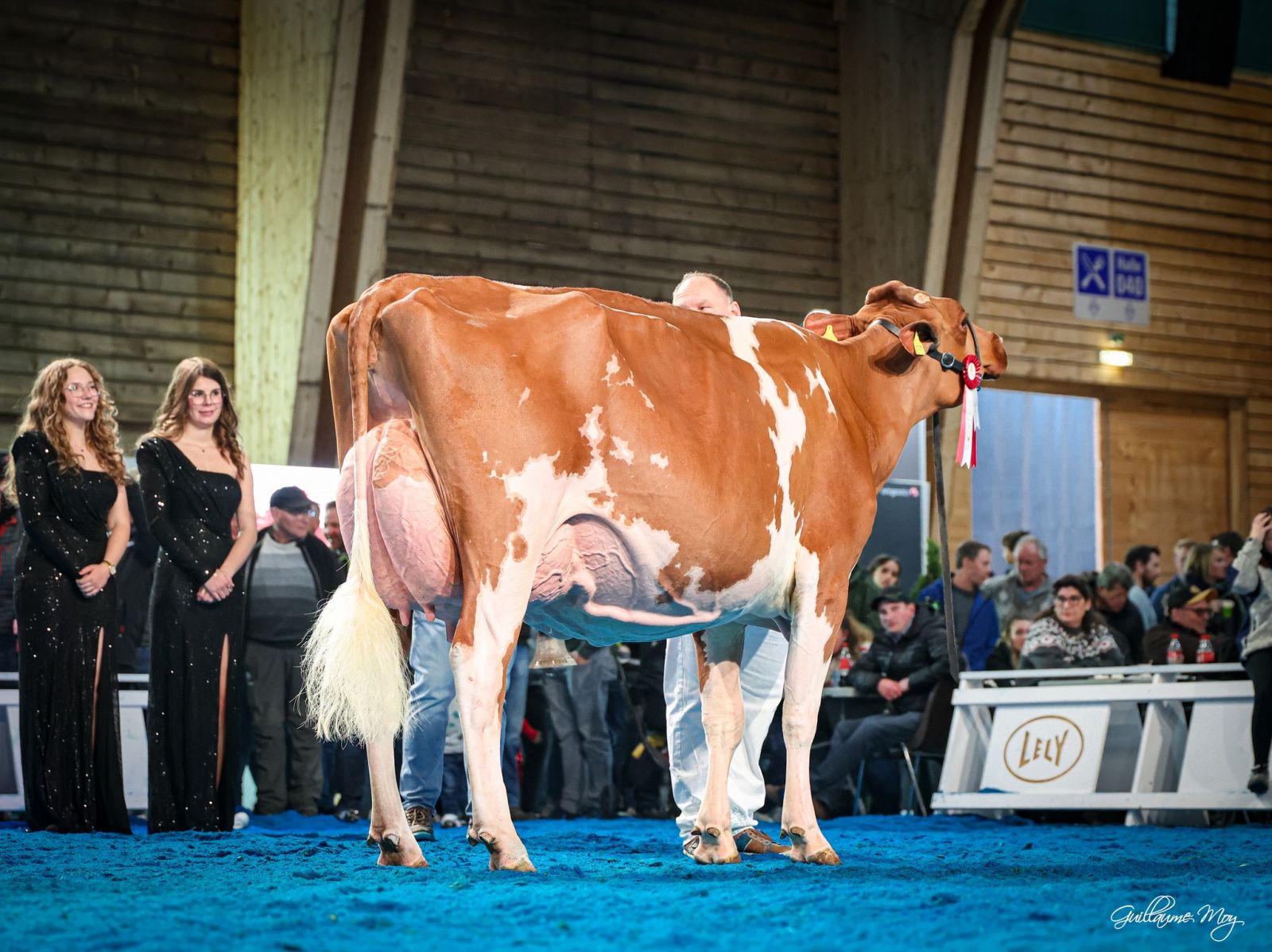 The new Grand Champion of the R&W Show Expo Bulle 2026 is Rubels Kati! She won earlier that day the Reserve Udder Champion title behind Ayer Addison Rita. In the Grand Championship, it was the other way round and had Rubels Kati, Addison Rita by her side. Rubels Kati is sired by OH DG Rubels-Red, he is the Argo *RC son bred by Diamond Genetics and De Oosterhof Holsteins. Rubels-Red @ ABS is an Argo *RC son from OH DG Rubellia VG-86-NL 2yr. and traces back to Rainyridge Mr Burns Eara *RC EX-92-CAN! Rubels-Red is also successful as a sire of sons, as evident from various high populair sons, like: Ranger-Red, Rocky-Red, Ryder-Red, Twilight-Red and Flight-Red!