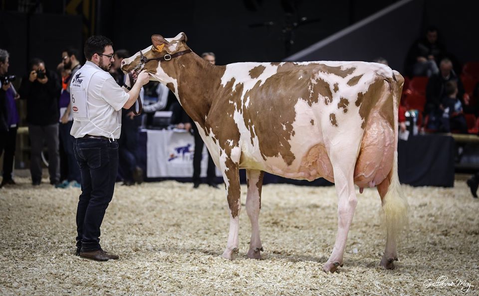 The exciting & promising Blondin Lotus *RC daughter of KHW Regiment Apple-Red-ET EX-96-USA 28* 4E DOM her latest EX-95 offspring: MS Apples Aleda-Red EX-95-CAN EX-95-MS 2E won her section at the National Show in France, the SIA in Paris last weekend. Her dam is the full sister to the 2nd placed 125,000 lb. cow @ World Dairy Expo 2019: Miss Apple Snapple-Red EX-95-USA EX-96-MS. This ultra successful branch of the APPLE's also delivered Erbacres Snapple Shakira VG-89-CAN 3yr. (s. O'Kaliber x Miss Apple Snapple) who turned out as the Intermediate Champion World Dairy Expo 2018!! Petton Maleda Red VG-88-FR 2yr. is a name to keep in mind. She continues the success of this family in Europe.