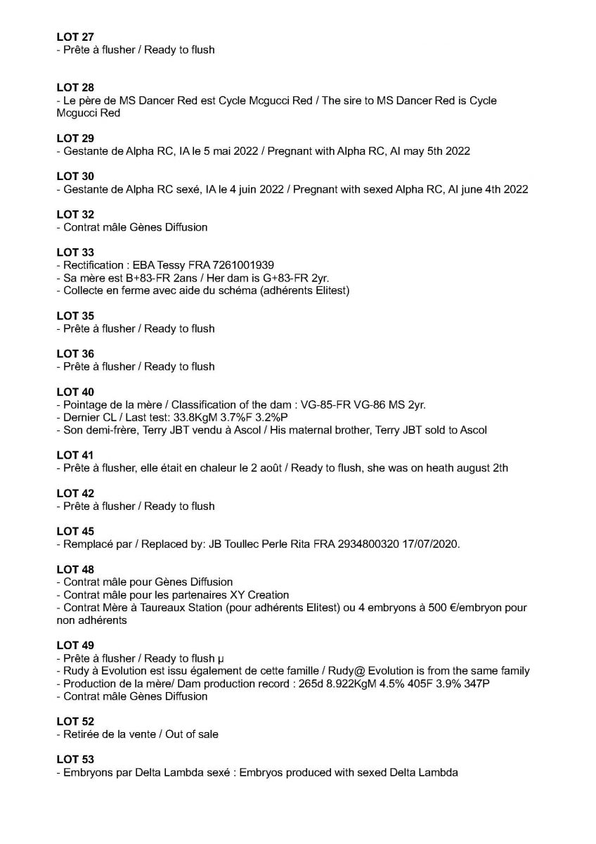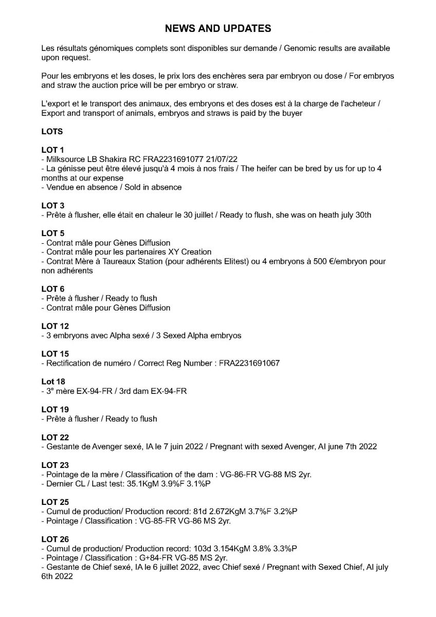 Sale Update - Vente La Brasserie Holstein Sale '22