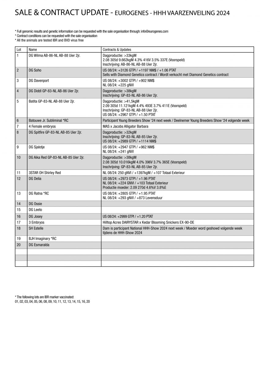 The Sale Update of the Eurogenes - HHH Vaarzenveiling - Online Tag+ is now ONLINE available. The Sale Update includes melkproductions of dams and Diamond Genetics contracts!