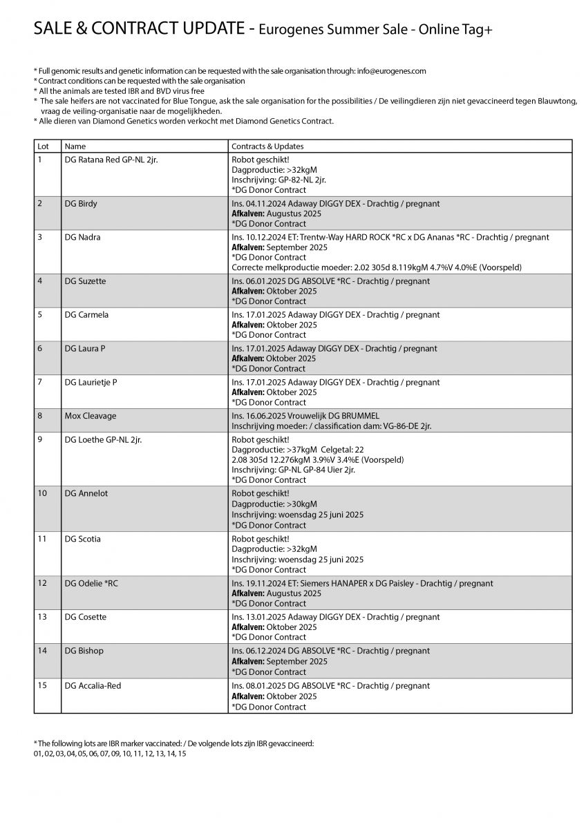 The Sale Update of the Eurogenes Summer Sale 2025 - Online Tag+ is now ONLINE available. The Sale Update includes melkproductions, classifications and pregnancies!