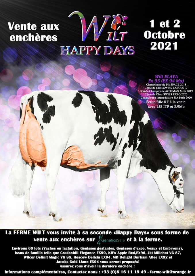 A great TAG Sale to mark in your calendars: the second edition of the Wilt Happy Days @ GAEC Wilt, France. This sale will be held October 1 - 2, 2021. They are selling >60 lots and only the very best from the top cow families you can find around the globe. For sale are milking cows, show cows, pregnant heifer, show heifers, huge embryo packages and many more!! Follow their Facebook page in the upcoming weeks for more info about the lots in the Wilt Happy Days TAG Sale.