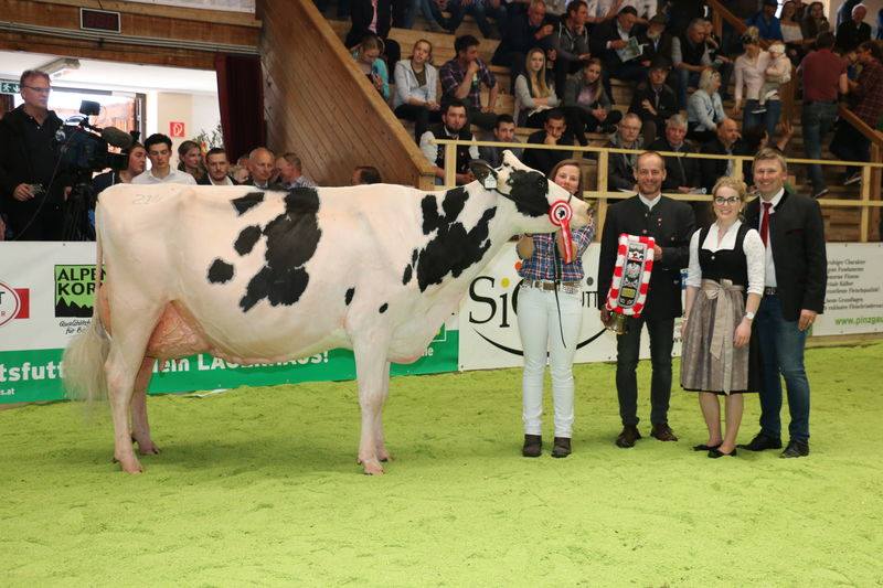 The Salzburg State Show in Maishofen, Austria is recently won by Schönhof´s Goldrock Mercedes! This 4th calver Goldrock (Goldwyn x Lee) daughter convinced at the show with her amazing udder and correct feet and legs above the 6th calver Sanchez daughter Romona who won the Res. Grand Champion in Maishofen. Schönhof´s Goldrock Mercedes EX-90-AT is from a great pedigree: VG-86 Star-Leader x VG-87 Rudolph x VG Bonatus.
