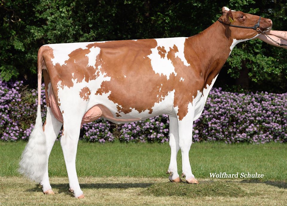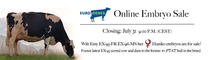 Lot 16 in the Eurogenes Online Embryo Sale is a really special one. #2 Siemer Lambda HANIKO (only bull in the breed with >3.30 PTAT and >2500 GTPI) from Miss Apple Nohl Alana P *RC. An incredible Beemer grand daughter of 'one million dollar cow' KHW Regiment Apple-Red EX-96-USA 28* 4E DOM. Her maternal sister by Diamondback *RC sold for 10.000 EUR in the ALH at Home Sale and recently scored VG-85-NL with VG-87-MS 2yr. Super opportunity to get your own APPLE. Dam Ms Apple Aalsea-Red *P VG-86-CAN VG-87-MS 2yr. is a maternal sister to Ms Candy Apple Red EX-94, Ms D Apple Danielle EX-94, Miss Apples Aria EX-92, Miss Apple Snapple Red EX-95 EX-96-MS - Res. Senior Champion R&W WDE 2017 & 2nd 125,000 Lb. Production Cow World Dairy Expo 2019.