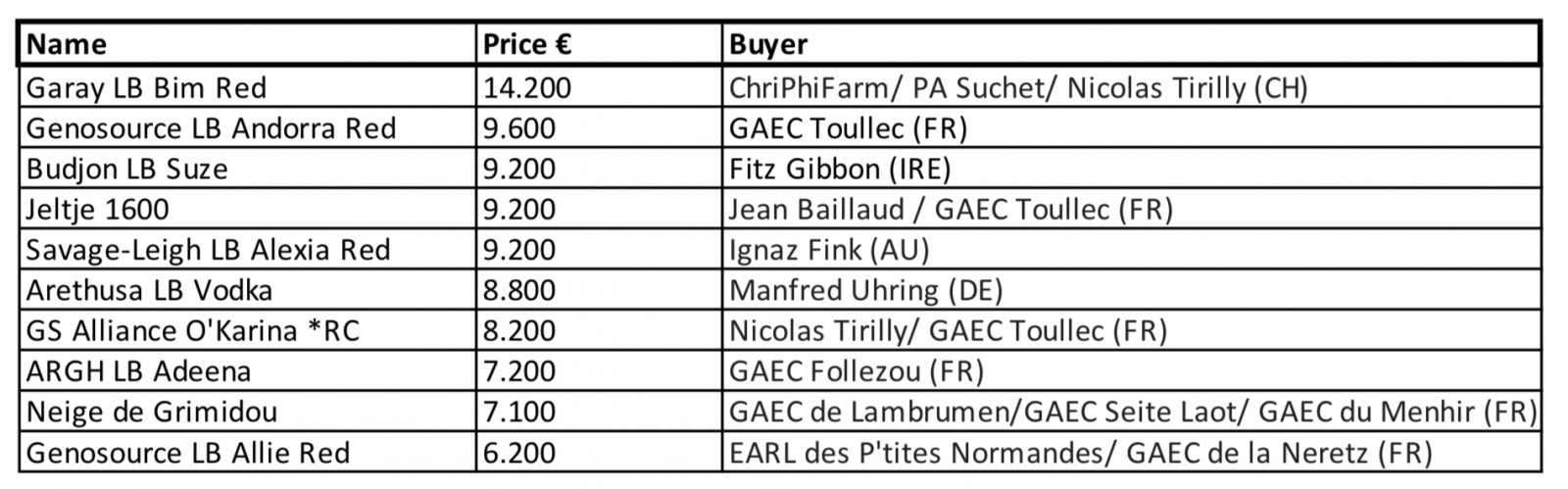 The 2nd highest seller was also RED and a fancy Jordy-Red descendant from the Apple's. She was sold for € 9.600 to GAEC Toullec in France.