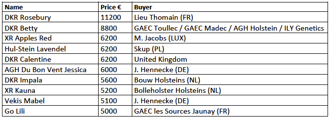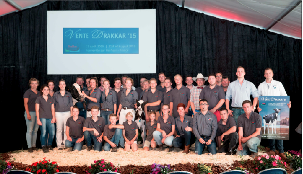The Vente Drakkar 2015 held on Friday August the 21st have been a very successful edition. Visitors from many different countries helped for a great atmosphere at the farm of Drakkar Holsteins in France. The average price was EUR 3.643 to buyers out of 9 different countries. Topseller of the sale was DKR Rosebury, a lovely Kingboy daughter out of the Diepenhoek Rozelle cow family with +2538 GTPI for EUR 11.200.