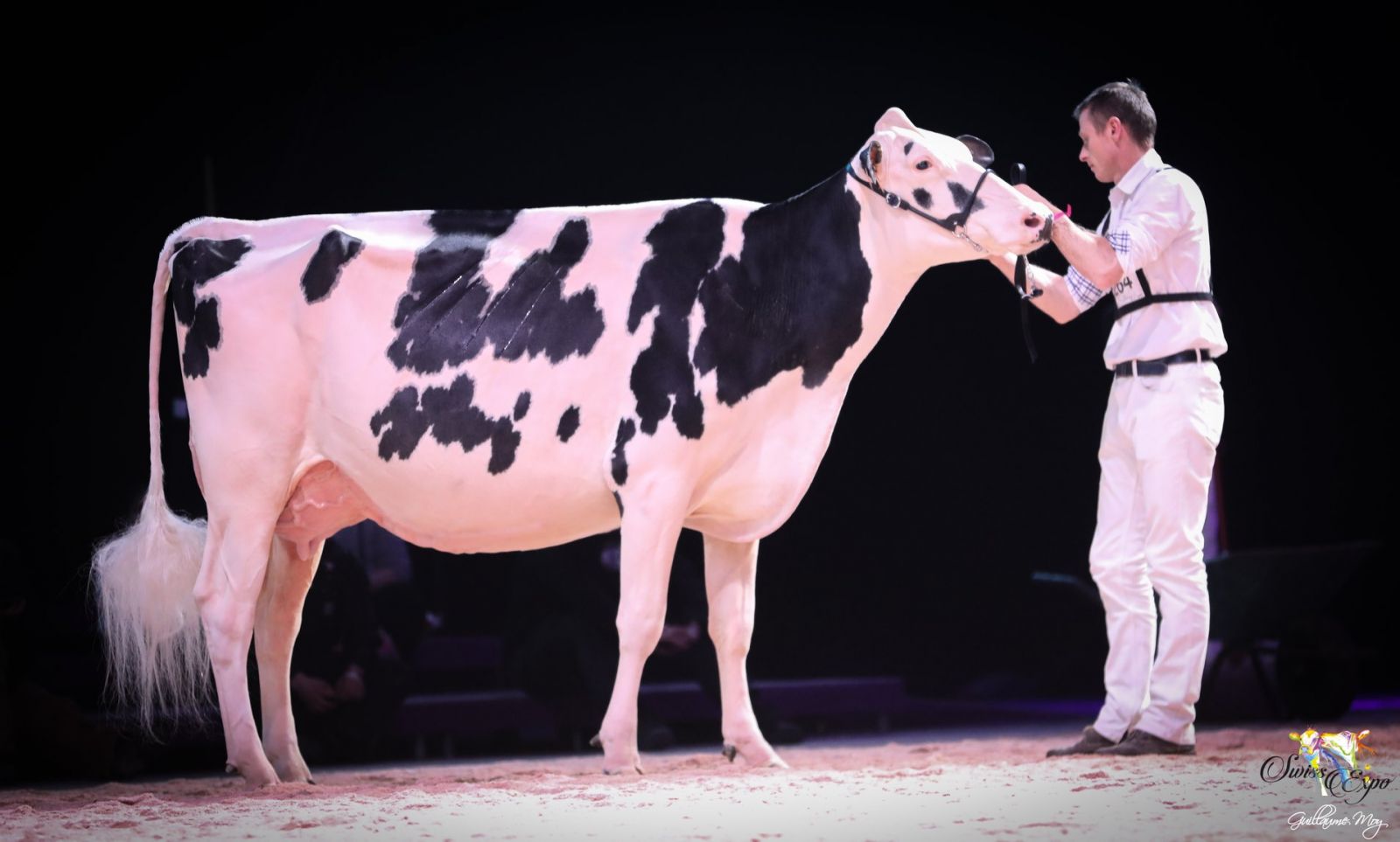The wonderful Sunibelle Dempsey Esprit became SUPREME Champion of the Swiss Expo 2020 for the second time in a row. An outstanding performance!! The show was held for the first time in Genevaa with more than 1000 cows who were entered for the show. Sunibelle Dempsey Esprit won the Grand Champion of the Holstein show and was later on crowned as SUPREME Champion of the Swiss Expo. Reserve Grand Champion of the Holstein Show went to Hanna-Vray and Honorable Mention to Sous Revers O Kaliber Odessa.