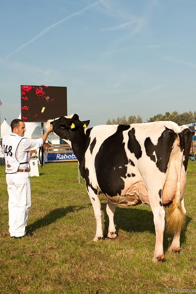 2014 is a great show year for Bons Holsteins which has won so many titles on International, National and Regional shows already this year. The 102nd edition of the County show Hoornaar last Saturday won by the reigning National Champion, Bons-Holsteins Koba 191! Maternal sister Ella 175 won the Res. Int. Champion and Ella 158 (s. Mailing) won the Sr. Championship & Res. Grand Champion B&W. Also in the R&W show Bons won a title, Talent dtr Aaltje 94 won the Senior Class & Grand Champion R&W.