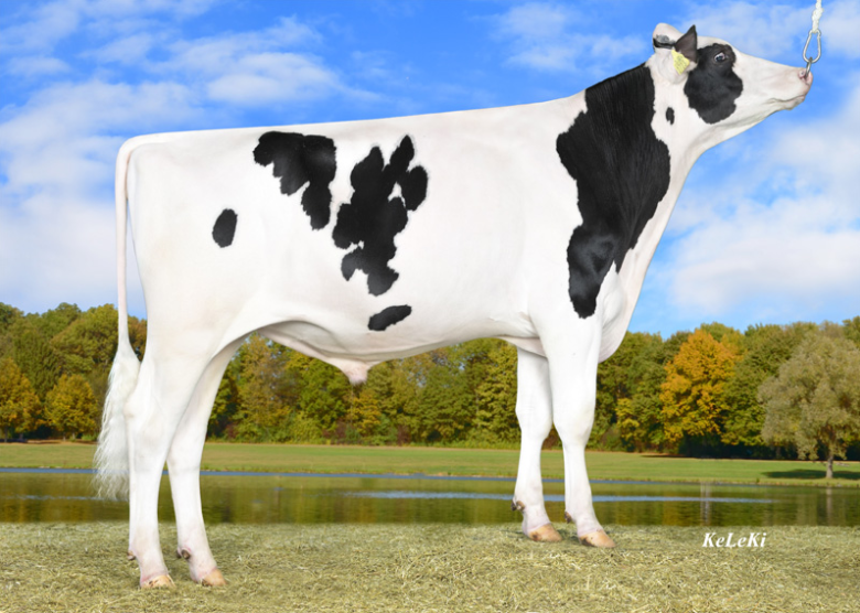 We received a sweet picture in the typical Dutch landscape of the dam to the global indextopper: Hul-Stein CROWNMAX @ Masterrind. This Imax son from Hul-Stein Crown Party 2 VG-87-NL 2yr. notes +160 RZG / +153 RZM / +112 RZN / +1445 Milk / +0.10% Protein and used to be the #1 RZG bull in Germany in April 2019. This extraordinary family which deliverd many bulls for A.I. traces back to the 47 STAR cow Stantons Freddie Cameo EX-90-CAN EX-MS 8yr. and maintains 6 generations EXCELLENT dams. Hul-Stein CROWNMAX & Hul-Stein Crown Party 2 are both bred by Hul-Stein. Crown Party 2 is now owned by Rijnhof Holsteins.