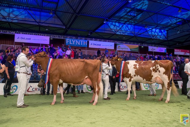 The Swiss Ralstorm daughter Plattery Princesse from the Eggerink family has been named Grand Championship at the Red & White Show of the Dutch National NRM Show! In the young cow classes it was the impressive Expression daughter Heerenbrink Dina 385 who won Champion 2yr. old. The Intermediate Championships went to M.H. Alana 5, who was Grand Champion R&W in 2015 at the National HHH Show. Other Championships were won by Barendonk Paulina 168 winning Res. Champion 2yr., Brook Marie 68 wit Res. Int. Champion and Barendonk Emma 220 who won the Res. Senior Championship. Click further for more results and pictures.