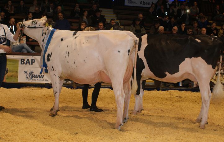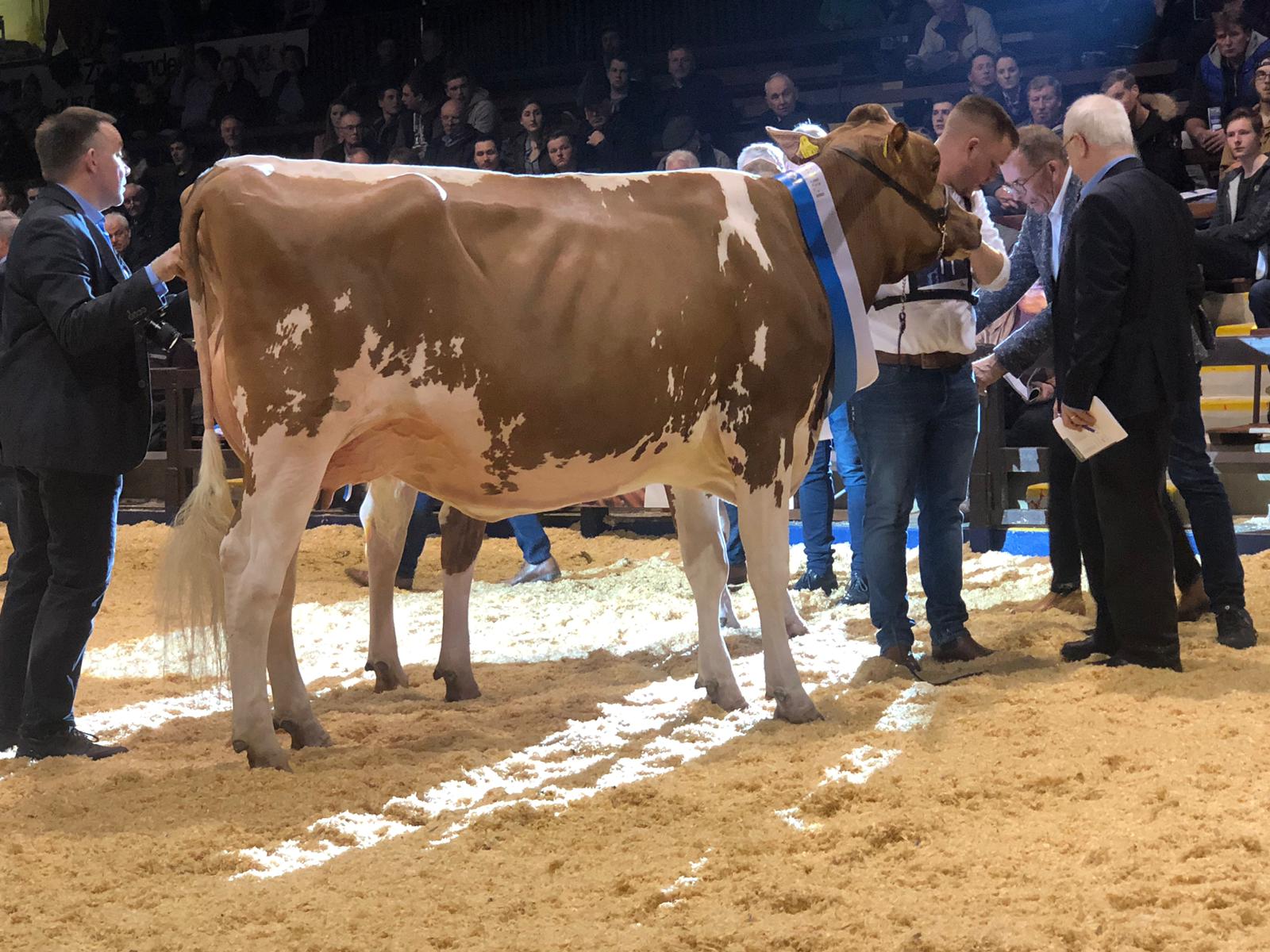 Last week it was time for the RUW Färsenschau (2-Yr Old Show) in Krefeld, Germany. This show Grand Champion went to Braxton daughter Roxy exhibited by Bernd Lohmann. Also the R&W make a lot impression at the visitors. The Grand Champion 2-Yr Old went to the beautiful Diamondback *RC daughter WR Miley in ownership of Ludger Wiewer. The Res. Grand Champion of the R&W show was Thalia-Red, an stunning Absolute-Red daughter of Nosbisch Holsteins. At this show were also two progeny groups presented of COL Basical & ST Present. COL Basical is a Balisto son in A.I. @ RUW and impressed with a group of harmonic and well-balanced 2-Yr Olds.