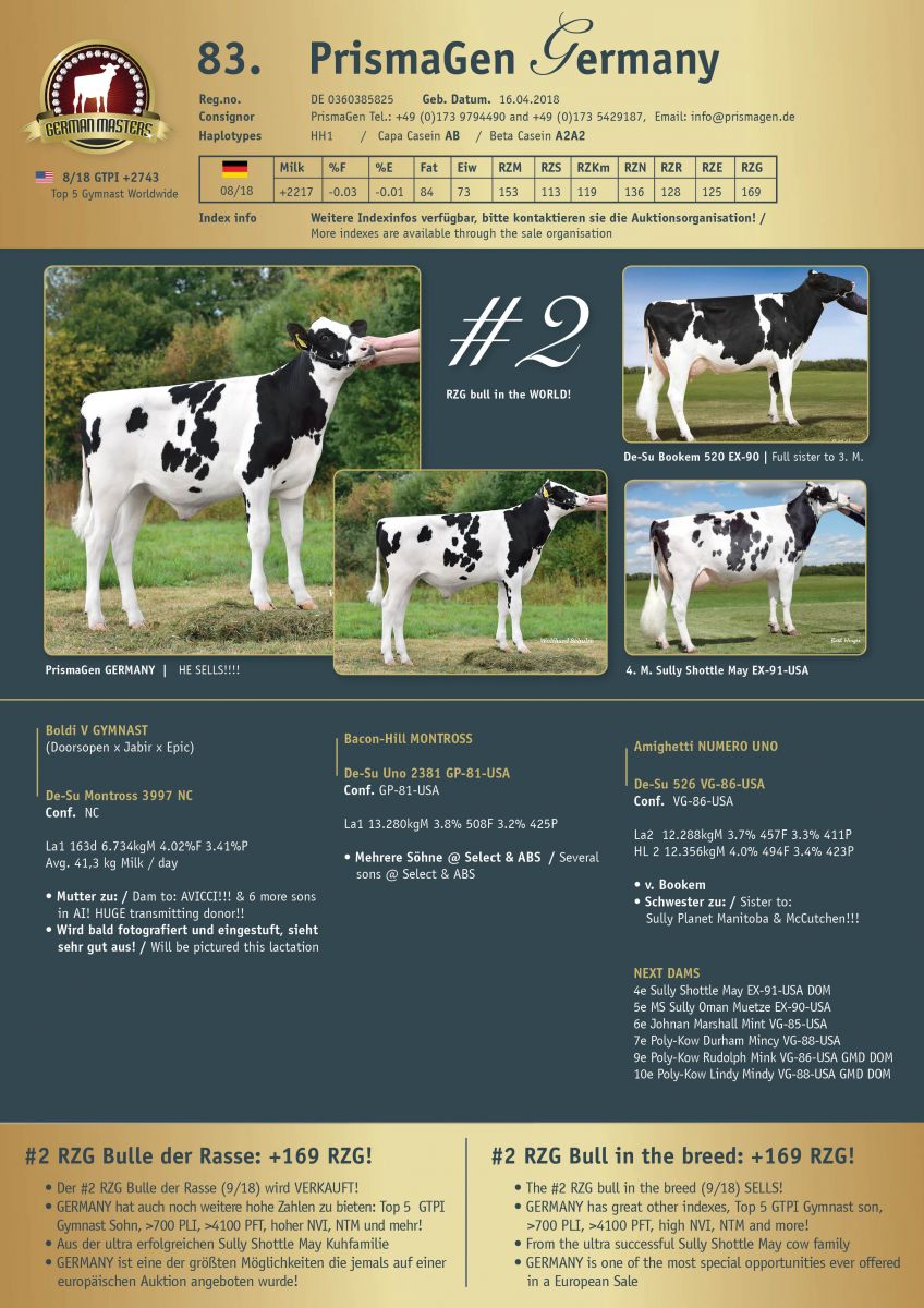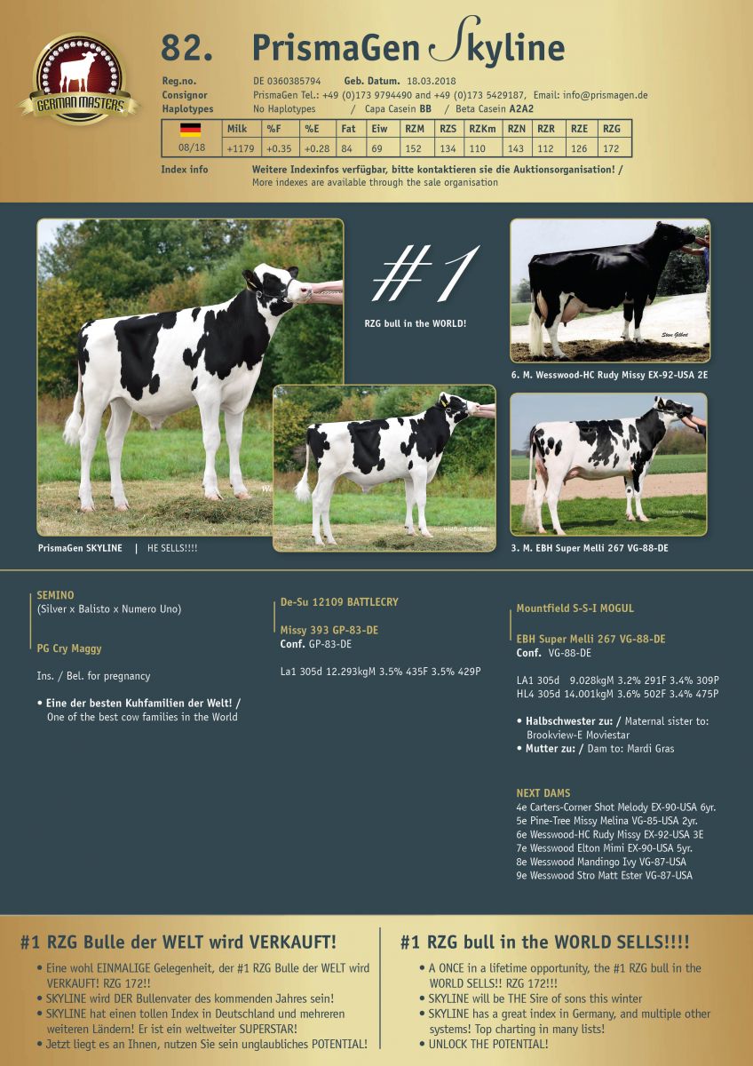 An offering from the highest level, an offering never offered before in a global auction, Lot 82 and Lot 83, the #1 & #2 RZG bulls in the World are selling in one package in the German Masters Sale 2018 (Friday, 19. October 2018) - 2 bulls with their indexes in multiple systems at the highest level and pedigrees which could be useful for any breeding program around the World! Read further fore more information!