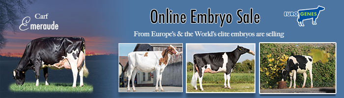 A new edition of the Eurogenes Online Embryo Sale is OPEN for BIDDING. Go to the sale site and take a look in the exciting offering with SHOW, TYPE, GTPI, RZG, NVI & more! With for example: mixed flush FEMALE Koepon Oh Ryder-Red / NH Spirit-Red embryos out of Wilt Anara P-Red backed by MS Farnear Aria Adler EX-96-USA, FEMALE Stantons CHIEF embryos out of Galys-Vray EX-94-CH her Mirand PP *RC grand dtr, FEMALE Farnear Delta-Lambda embryos out of SH Tatoo Sunrise, FEMALE Holysmokes embryos out of Thurler Cmfort Legc Domino (A2A2) and many more!