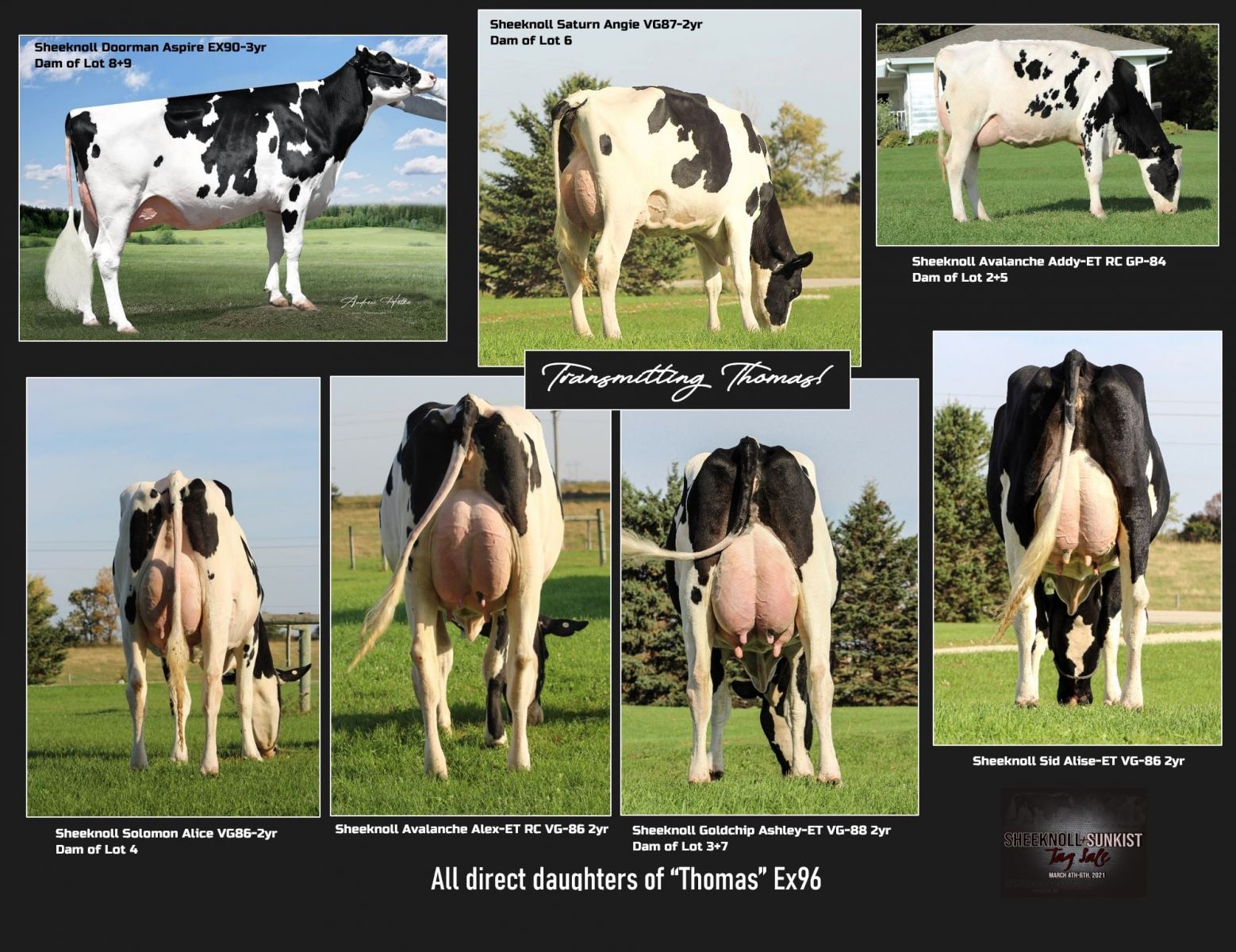 Sheeknoll Durham Arrow 'Thomas' EX-96-USA 2E alais the Tank is a once in a lifetime cow that has stolen a lot of hearts, she was Grand Champion World Dairy Expo 2016, Unanimous All-American Aged Cow 2016, Grand Champion Midwest Fall National 2016 and many more! But her legacy lives on through her amazing 2-Yr Olds sired by Avalanche *RC, Solomon, Gold Chip and Sid up to VG-88-USA 2yr. at Sheeknoll Farms, the home of Arrow. At Hurkmans ET in the Netherlands, Arrow her Solomon daughter Sheeknoll HET Solomon Arriba is making furore and has to potential to follow in her footsteps.