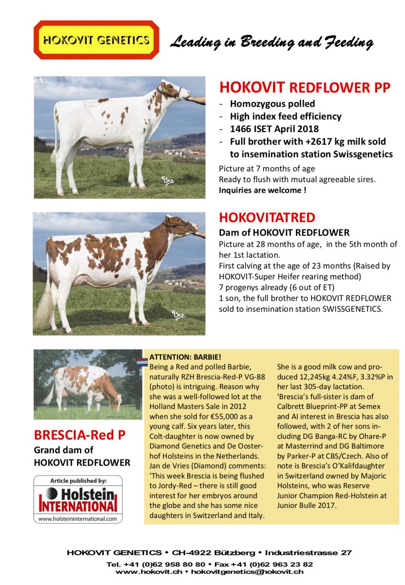 - 1 sons in A.I. @ Swiss Genetics, who is the full brother to Hokovit Redflower PP