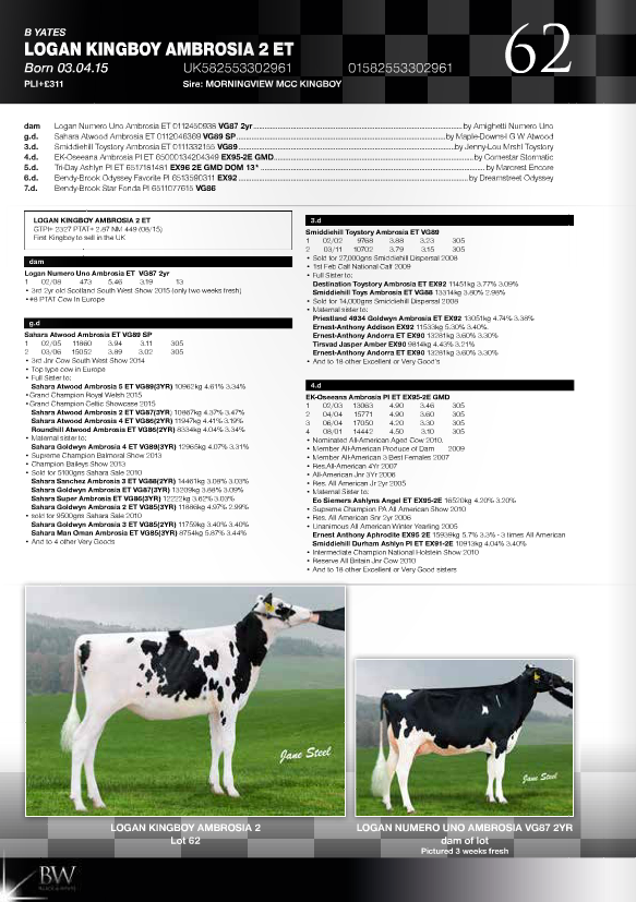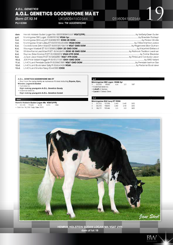 - Lot 28. Dam, Lillyhall Superstition Bria scores now VG-88-UK!