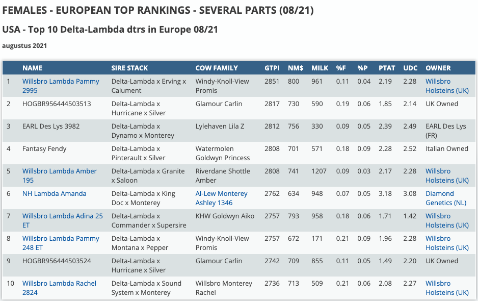 Top 10 GTPI Delta-Lambda daughters in Europe: CLICK HERE