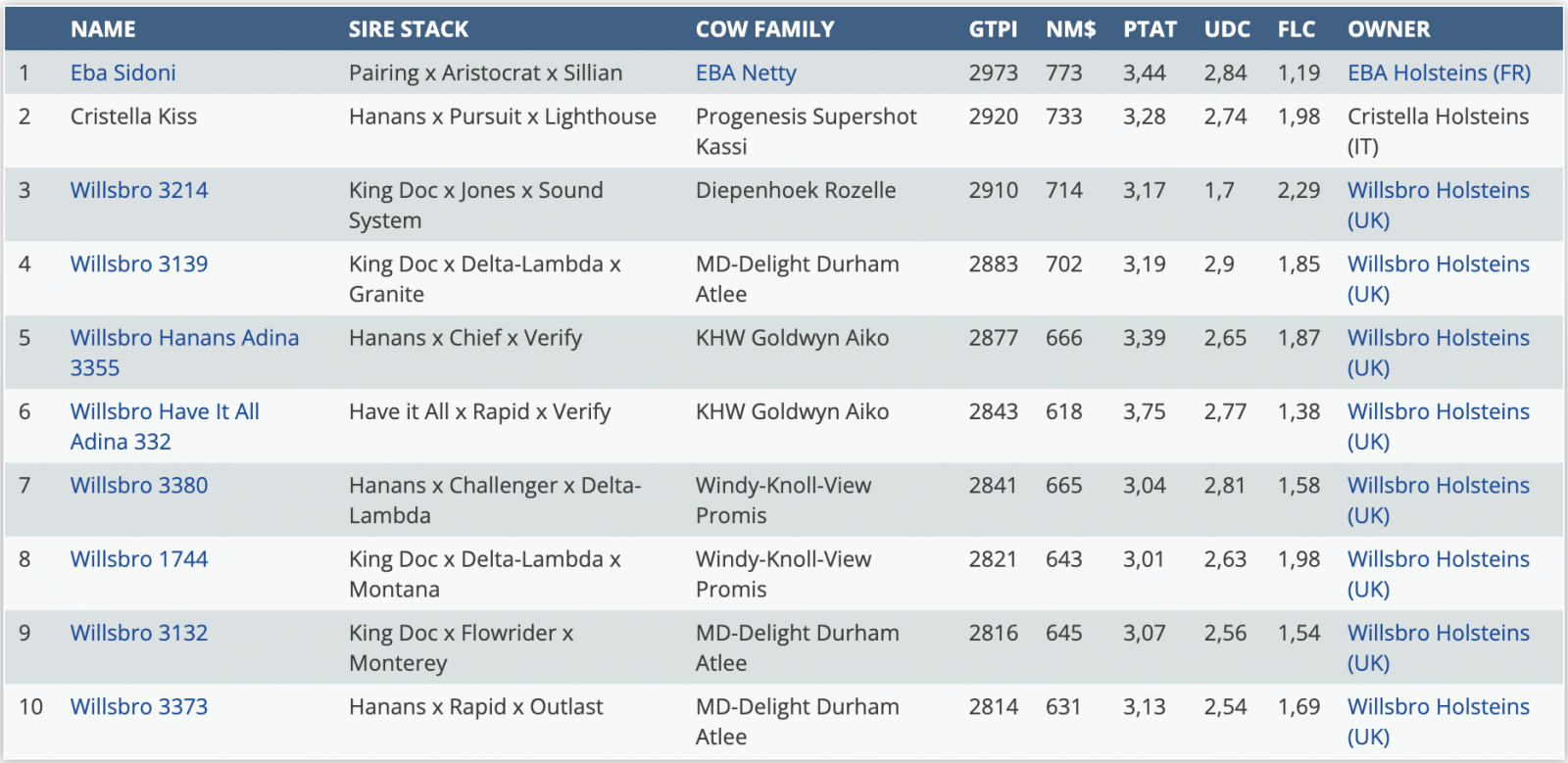 Top 10 GTPI females >3.00 PTAT in Europe!