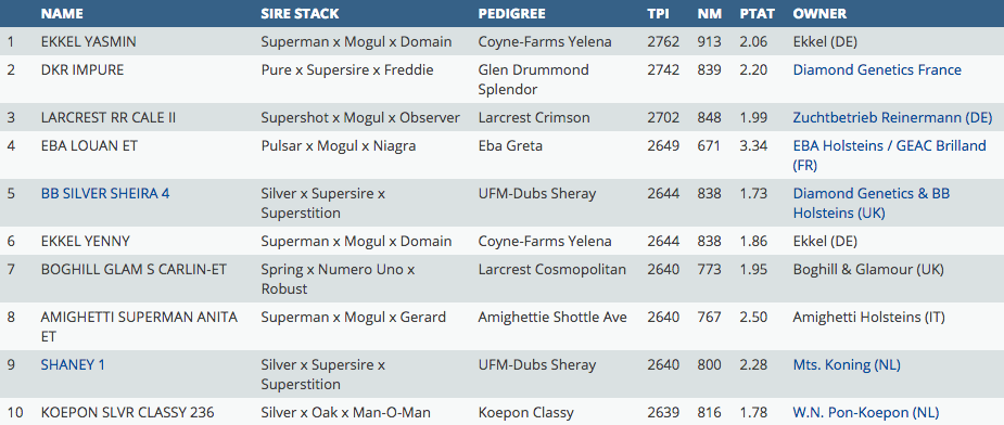 The top 25 GTPI European Females of September are online. No less than 4 descendants in the top 25 GTPI are going back on All.Nure Baxter Silvy EX-90-NL from the Morningview Converse Judy cow family.