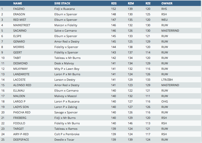 Top 25 RZG Genomic bulls of Germany Online!