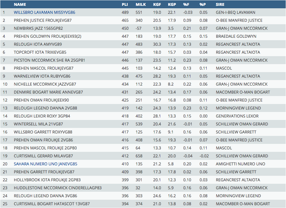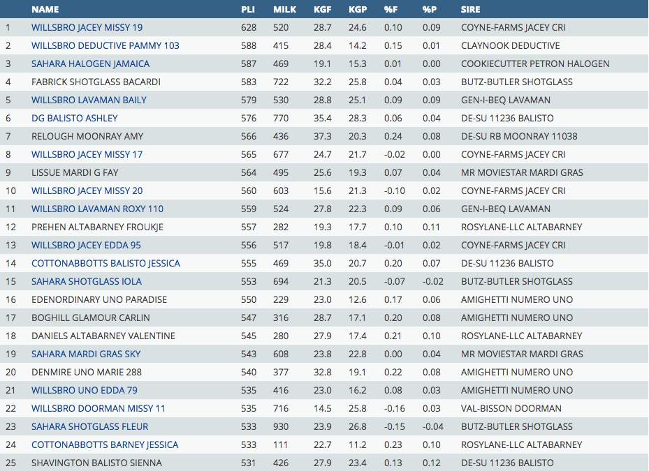 The top gPLI Heifers and Cows (housed in England) are online! Willsbro Holsteins dominates the top heifer rankings again with 9 heifers in the top 25 gPLI Heifers! Also Sahara & Wiltor Holsteins and Cottannabbots have had a successful run with several high-ranking females.