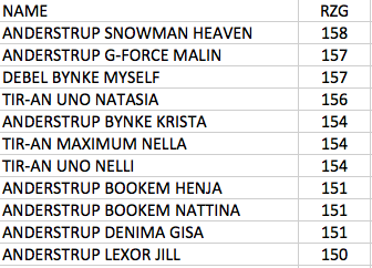 What a great August index run for Anderstrup Holsteins! No less than 11 heifers are scoring above 150 g RZG with Anderstrup Snowman Heaven leading the list with +158 g RZG making her one of the highest RZG animals in the breed!! Snowman Heaven is bred from a VG Shottle from Cogent Boliver Heaven VG-87. Anderstrup purchased this Shottle as an embryo from JK Eder Holsteins and Diamond Genetics. This is the cow family of a.o. Wa-Del Hayden.  Click further to see a complete top 10 RZG list from Anderstrup Holsteins.