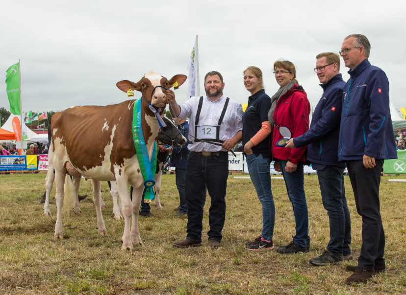 Riz Mandolina, a Diamondback *RC offspring of Mox Kite Maryrose EX-90-CH has been named 2-Yr Old Champion of the 13. Offenen Färsenschau in Tarmstedt, Germany. This promising R&W 2yr. old exhibited by Ralf-Günther Ritz placed first in the 7th junior class yesterday. After all strong junior classes, she went on to take the 2-Yr Old ribbons, with her hedmate Riz Meika, sired by Dixon, following in Reserve. Mandolina her grand dam is no one less than the polled Lawn Boy Red daughter of Maryrose: Mox Lawn Boy Melaxia EX-90-DE. She is the sister to Mox Moocha, the Res. Int. Champion German Dairy Show '19, Mox Talent Mandy EX-93-CH, the Junior Champion Expo Bulle 2013 and Ruegruet Joyboy Minneapolis EX-91-CH who won the Int. Champion at the Swiss Expo & Expo Bulle.