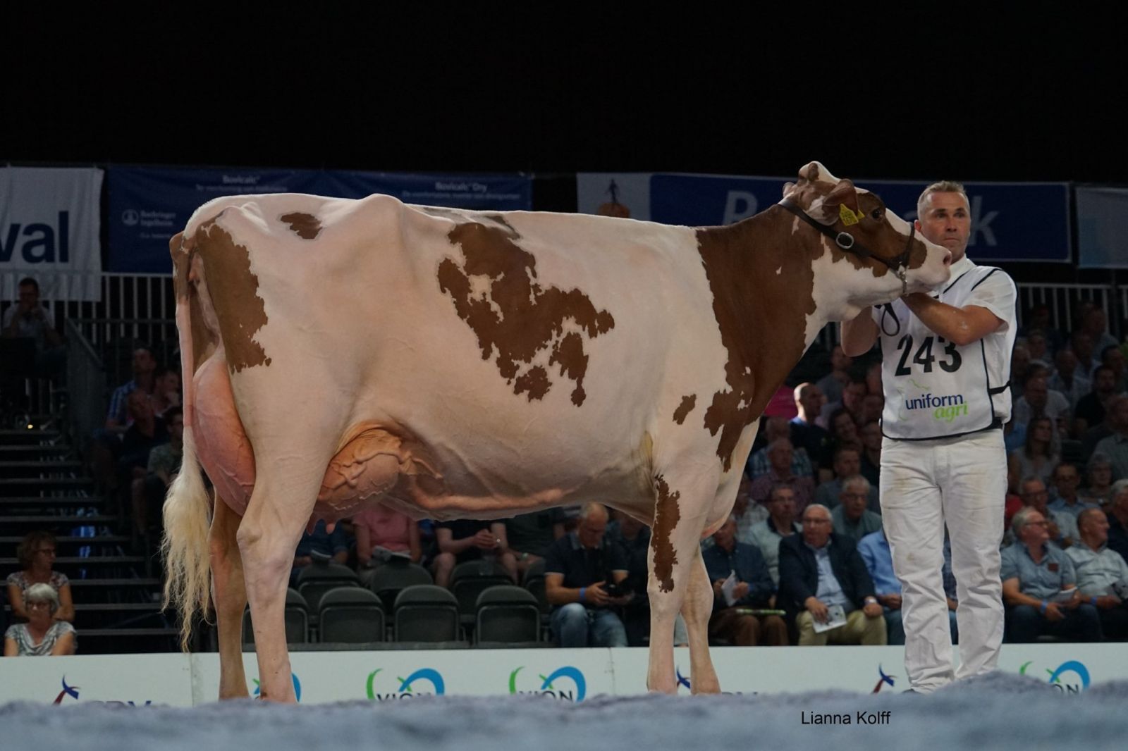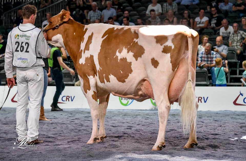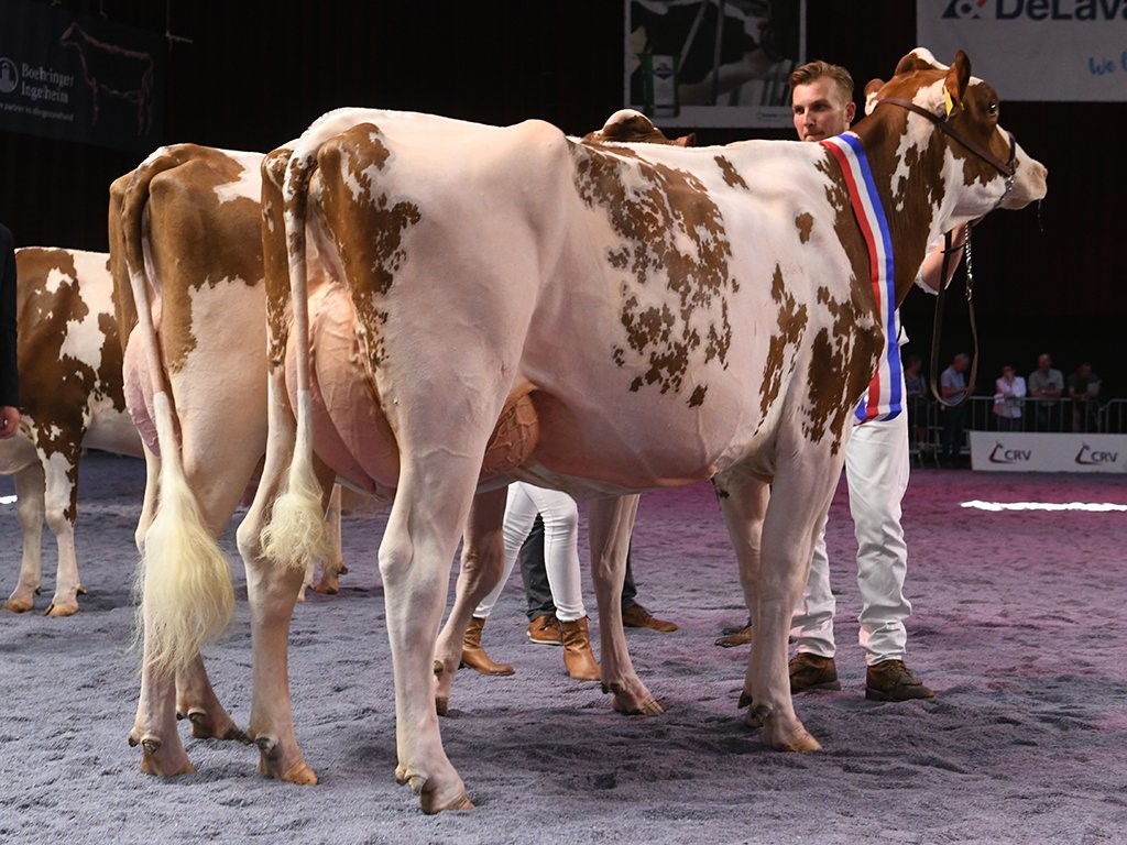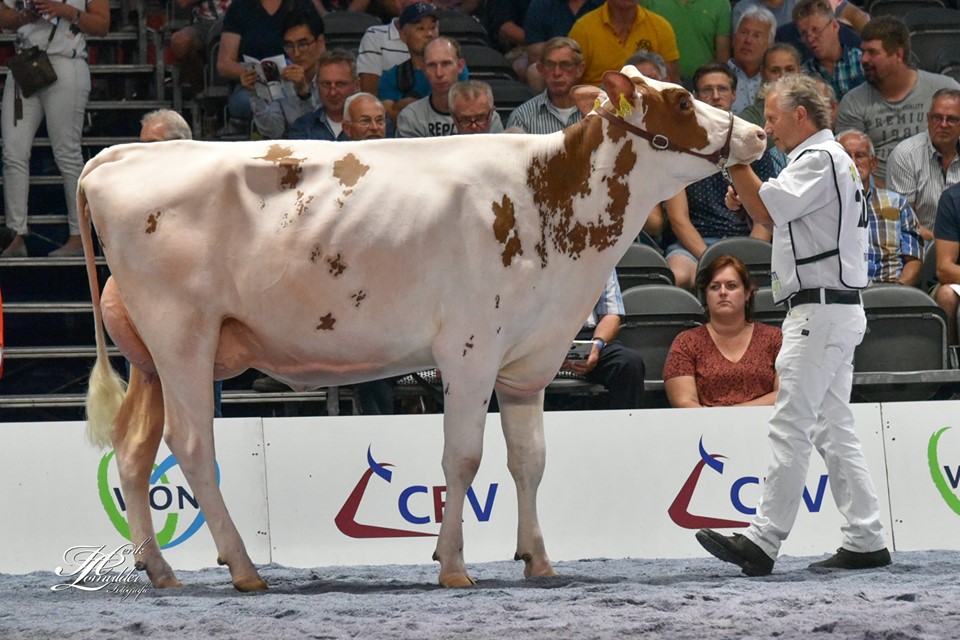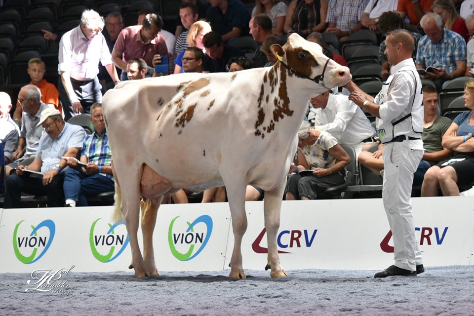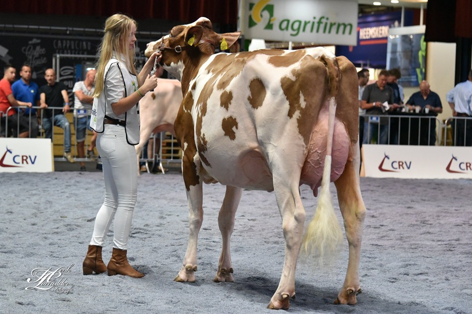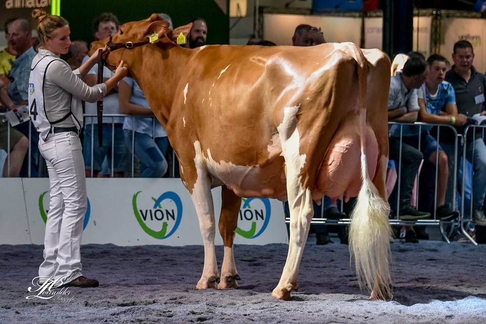 Twente Dairies Jose 2 (s. Big Apple) is crowned as the Grand Champion R&W of the Dutch National NRM Show 2019! She won earlier that day the Senior Championship and was later crowned by judge Danny Verstegen as Grand Champion of the R&W Show. The Res. Senior Champion R&W went to Future Dream H. Rosie (s. Jotan) of Future Dream Holsteins. The Intermediate Champion R&W went to Giessen Cecibell 8 (s. Pitbull *RC). Her daughter Giessen Cecibell 10 (s. Durango *RC) was also presented at the National Show and got the 2nd place in her section. The best 2yr. Old R&W of the show was Barendonk Massia 7273. This early Agent-Red daughter is owned by Barendonk Holsteins and traces back to Apina Mssia 102 EX-90-NL.