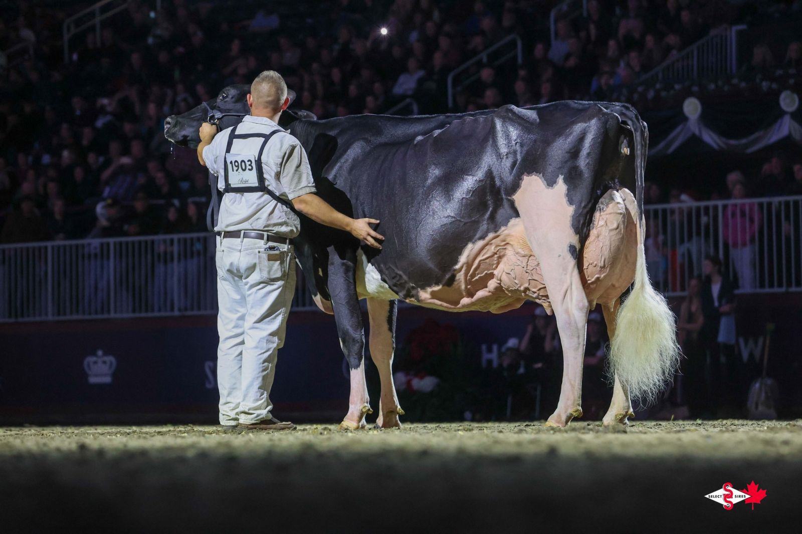 Unix daughter Altona Lea Unix Herminie, exhibited by Dalton Faris, East Gwillimbury, Ontario has been crowned by judge Joel Lepage and Associate Judge Jean-Philippe Proulx as the new Grand Champion of the Royal Winter Fair 2025. In second follows Eixdale Pwrup Alongside with the Reserve Grand Champion title at the Royal Winter Fair. The Alongside daughter from Milksource Genetics, Kaukauna, Wisconsin was Reserve Senior Champion last month at the World Dairy Expo. West-Adub Lambda Sadie won the H.M. Grand Champion title after winning the Intermediate Champion ribbon earlier that day and her class with Jr. 3yr. olds.