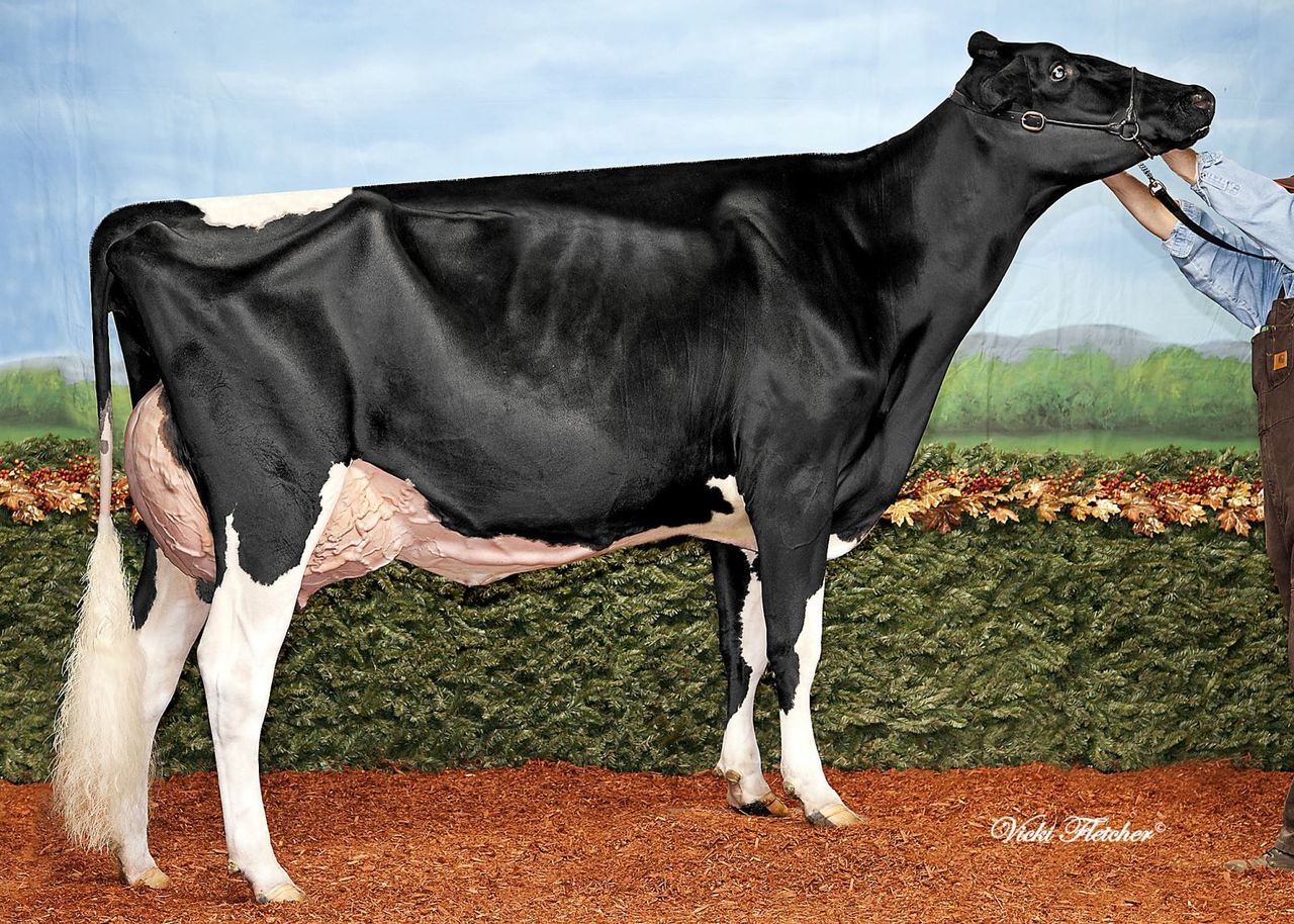 Valleyville Rae Lynn recently has scored the Maximum score of EX-95 points after being just 40 days fresh!! She already scored the Maximum score as a 2-Yr. Old after just 39 days fresh. Valleyville Rae Lynn has multiple big show successes on her name like HM. Int. Champion Royal Winter Fair 2013 and is co-owned by the Eurogenes-members Ponderosa Holsteins & Al-Be-Ro Holsteins.