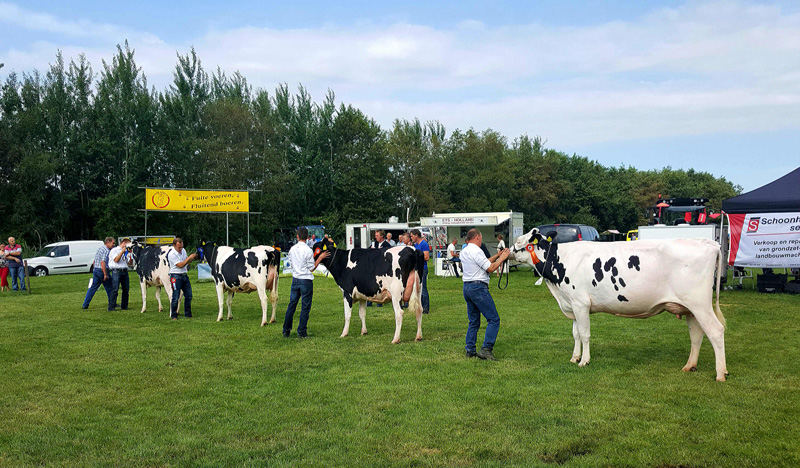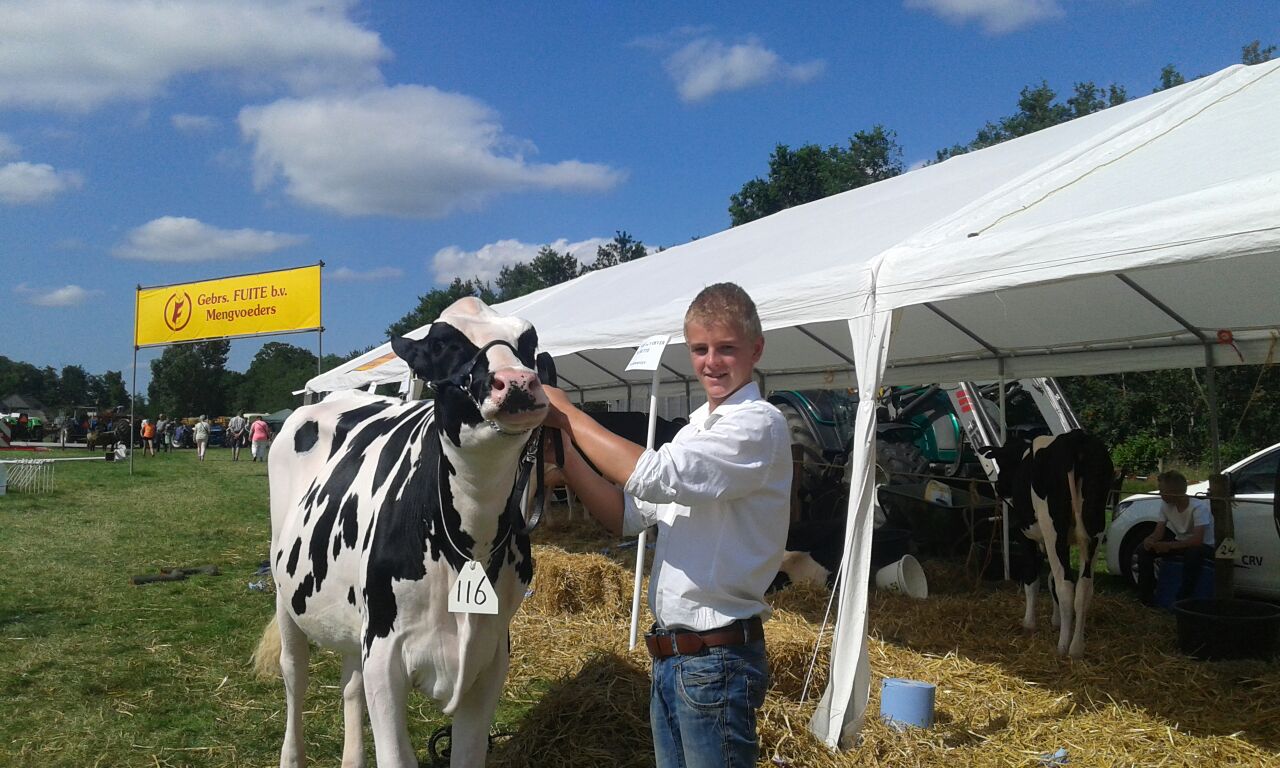 Vekis Phantastic VG-87-NL 2yr. won the Intermediate Championship last Saturday at the Regional’s in Oldebroek, Netherlands. Phantastic was sold last year during the Vekis Spring Sale to the Busweiler family from Nunspeet. She is among others dam to the well-known Numero Uno dtr, Vekis Paige! Veneriete Holsteins had great success with Veneriete Isy Jet (s. Ecoyne Isy) with winning Junior Champion. The Reserve Champion of the youngest calves was O’Chique, the Lotus grand daughter to Decrausaz O’Kalibra! She was sold as an embryo through the Eurogenes Online Embryo Sale to the Netherlands. J&G Holsteins won the Res. 2-Yr. Old & Intermediate Champion R&W with J&G Diana 9 and J&G Lena 128. Click further for more results.