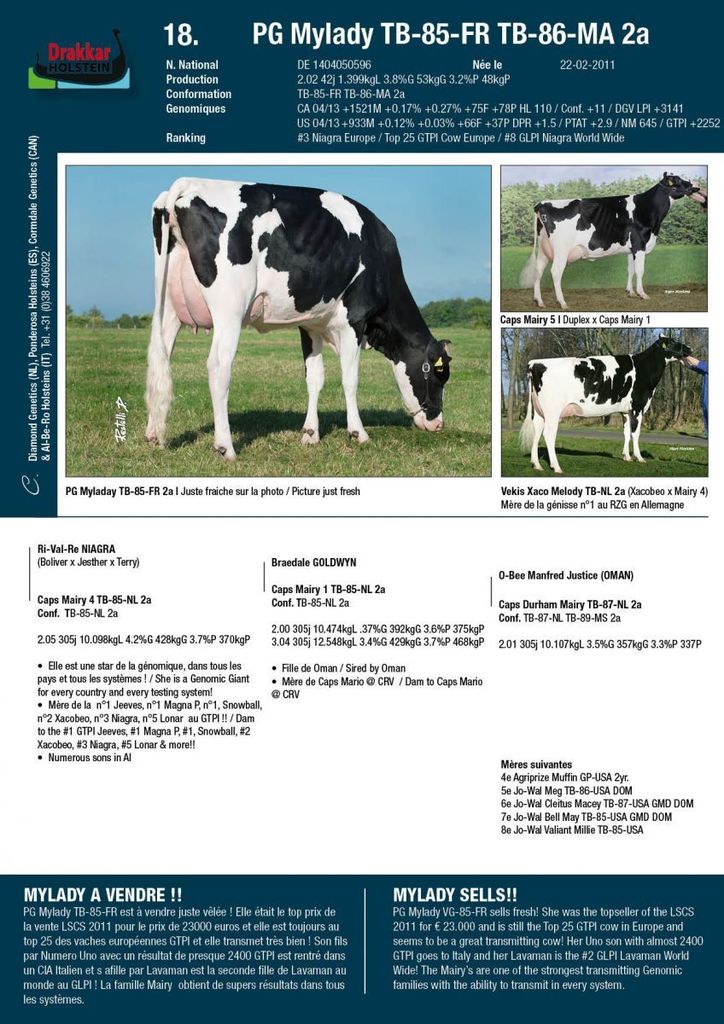 - Outcross Maternal line: Ladd P x Niagra x Stol Joc x Skalsumer Pietje's