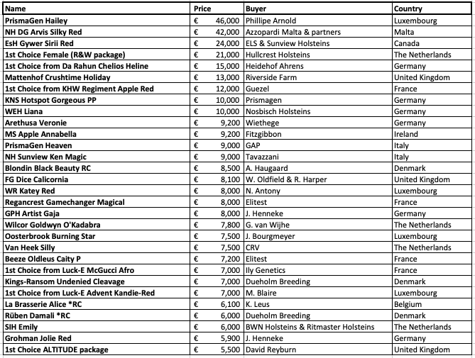 Topselling female this year was Lot 11. PrismaGen Hailey – one of the highest RZG heifers ever sold on a public auction World Wide, RZG 168, A2A2, BB, sired by the Charley son Siemers Merryguy. PrismaGen Hailey sold for € 46.000 to Mr. Phillipe Arnold from Luxembourg.