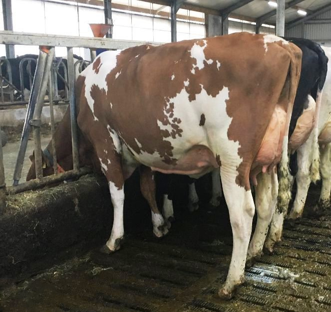 The great Red & White Julandy daughter: Batouwe Julandy Cindy-Red scored VG-87 with VG-89 F&L as a 2-Yr Old in the Netherlands. She is a direct daughter of the Intermediate Champion Hoornaar Show 2018: Share DG Agnieska-Red VG-89-NL EX-F&L La2. Her dam Agnieska-Red sold through the Eurogenes Online Heifer Sale and is one of the former highest TYPE heifers in the German system. This family goes back on Felder Den Barb Cindy EX-91-USA 3E GMD DOM and maintains more than 14 Very Good or Excellent scored dams.