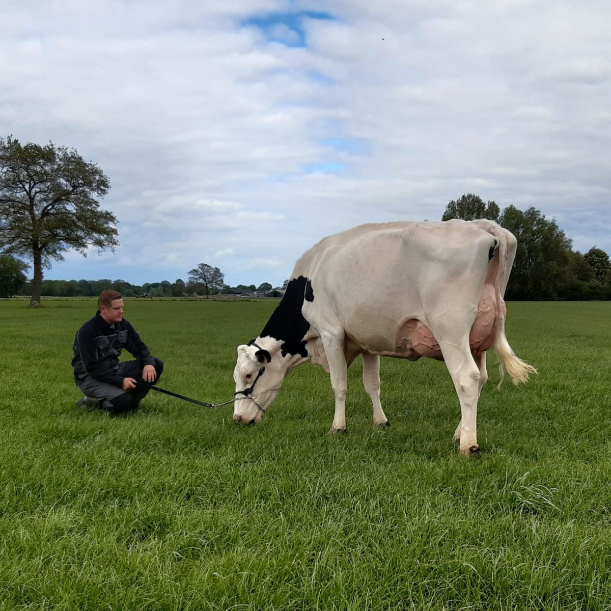 A brand new video of the extraordinary brood cow Holbra Joy VG-87-NL 2yr. now fresh in her 2nd lactation at Holbra Holsteins with already a daily production of 65kgM!! Joy was als mentioned as the 2-Yr Old Champion of the Fokcie Video Show 2020 and has a bright future in front of her. Joy her Modesty sister was 2-Yr Old Champion at the Laren Show 2019. Her dam Holbra Sandoya VG-86-NL 2yr. has total 7 milking daughters at Holbra Holsteins which are all classified VG-86 & VG-87 and up to VG-88 for their mammary systems! Sandoya her dam was 2-Yr Old Champion at the Bathmen-Laren Show 2015 and traces back to the ultra successful Holbra-branch of the Golden-Oaks Mark Prudence EX-95-USA 5E GMD DOM family.