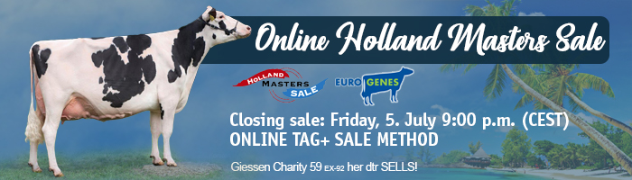 A video of the lovely Armani showheifer BH Blackrose *RC. Incredible heifer tracing back to the Grand Champion R&W World Dairy Expo, Madison 2005 & 2007: Lavender Ruby Redrose EX-96-USA. Dam was successful at the Rundvee Show Noord '17 with a 3rd place in her section between the B&W's. Third dam is the amazing Starmark-I Advent Red Rose EX-90-DE, who won several titles like: HM. Young R&W Swiss Expo '11, 3rd place Swiss Expo '11, Champion Young R&W Cows Alsfeld '11, Grand Champion Young German Holstein Show '11 and more.