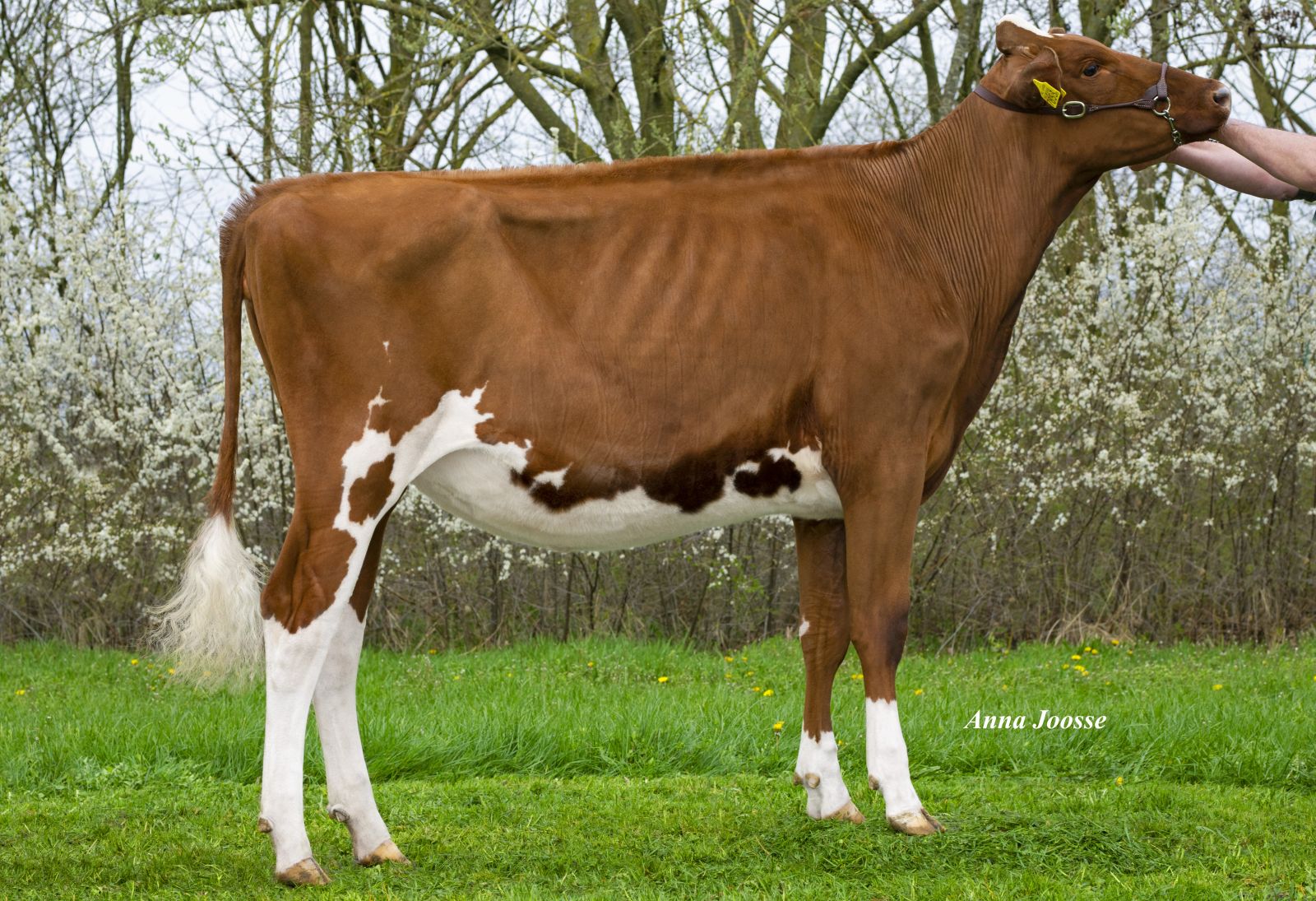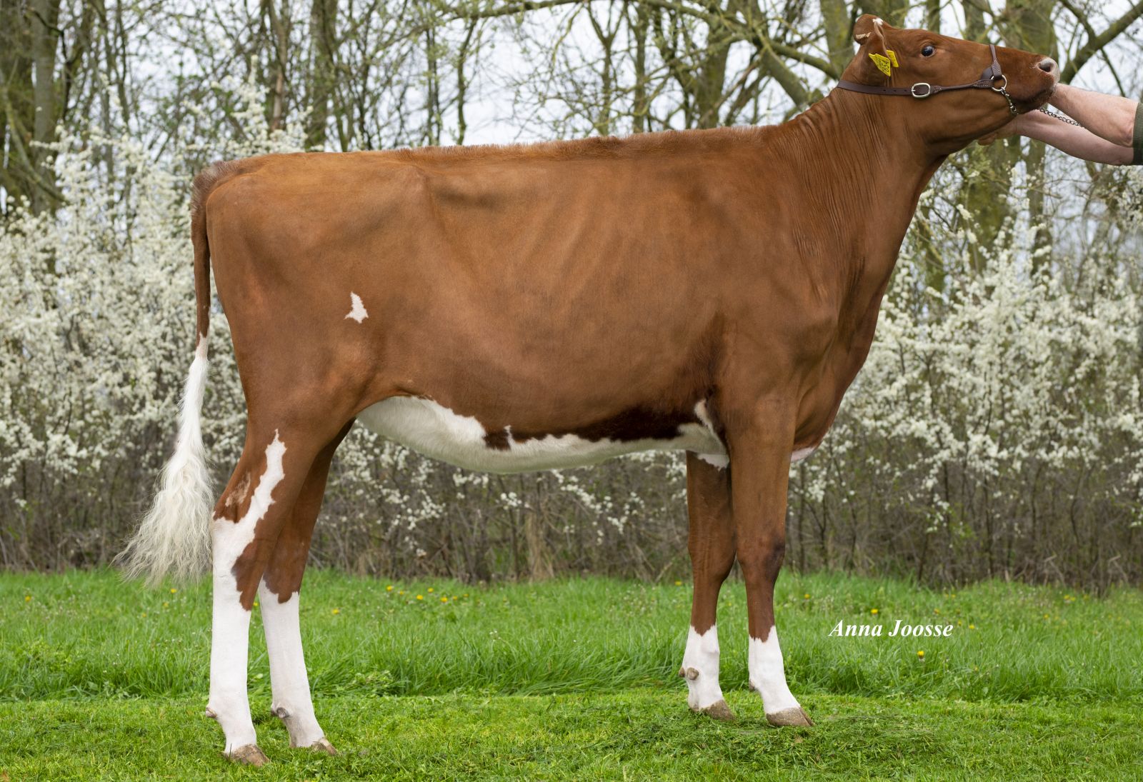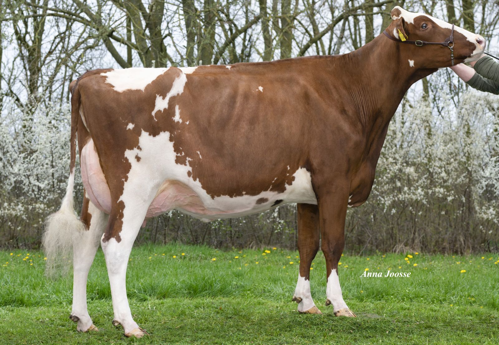 She belongs to one of the best R&W's at Batouwe Holsteins & Roubos Holsteins: ViG My Love-Red. This stunning Redneck daughter is a grand daughter to the EX-92 Joyboy and 2nd place DHV-Show 2017: RH Maibrit. This family traces back to RH Meggilee EX-91-DE, the dam to the R&W cow with the longest victory streak in Germany: RH Talent Maxima EX-94-DE EX-95-MS. My Love is scored with VG-86 as a 2-Yr Old with VG-89 for her Mammary System and has an impressive group of Warrior-Red daughters which already showing us the potential!