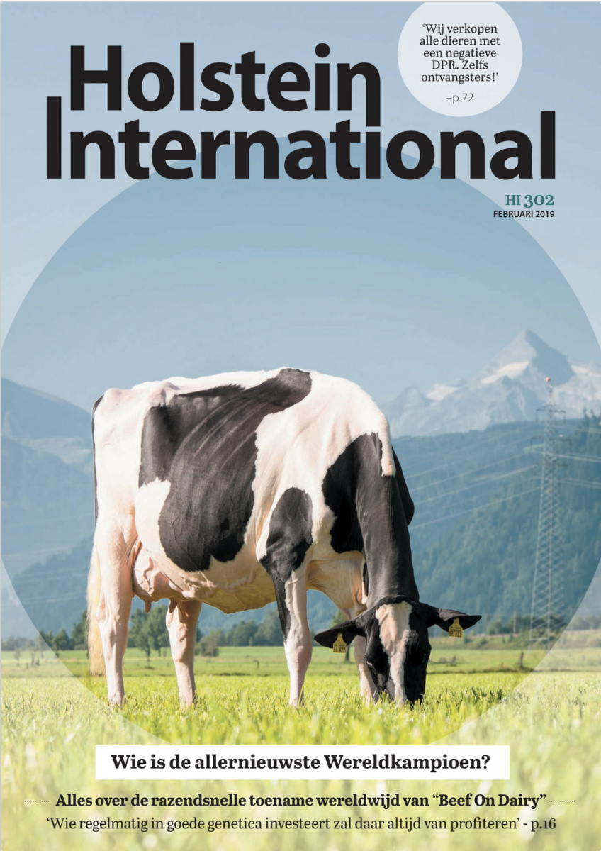 The incredible Wiesenfeld Artes Regale EX-90-AT is shining at the front cover of the Holstein International February '19 issue. This Artes daughter was Grand Champion of the National Show in Austria in 2017 and traces back to the queen of the breed: Glenridge Citation Roxy EX-97-USA. Christine Masfeller made the beautiful picutere of the front cover, last summer.